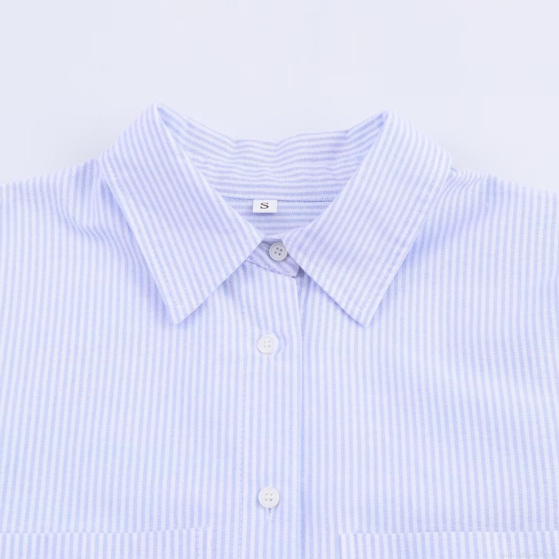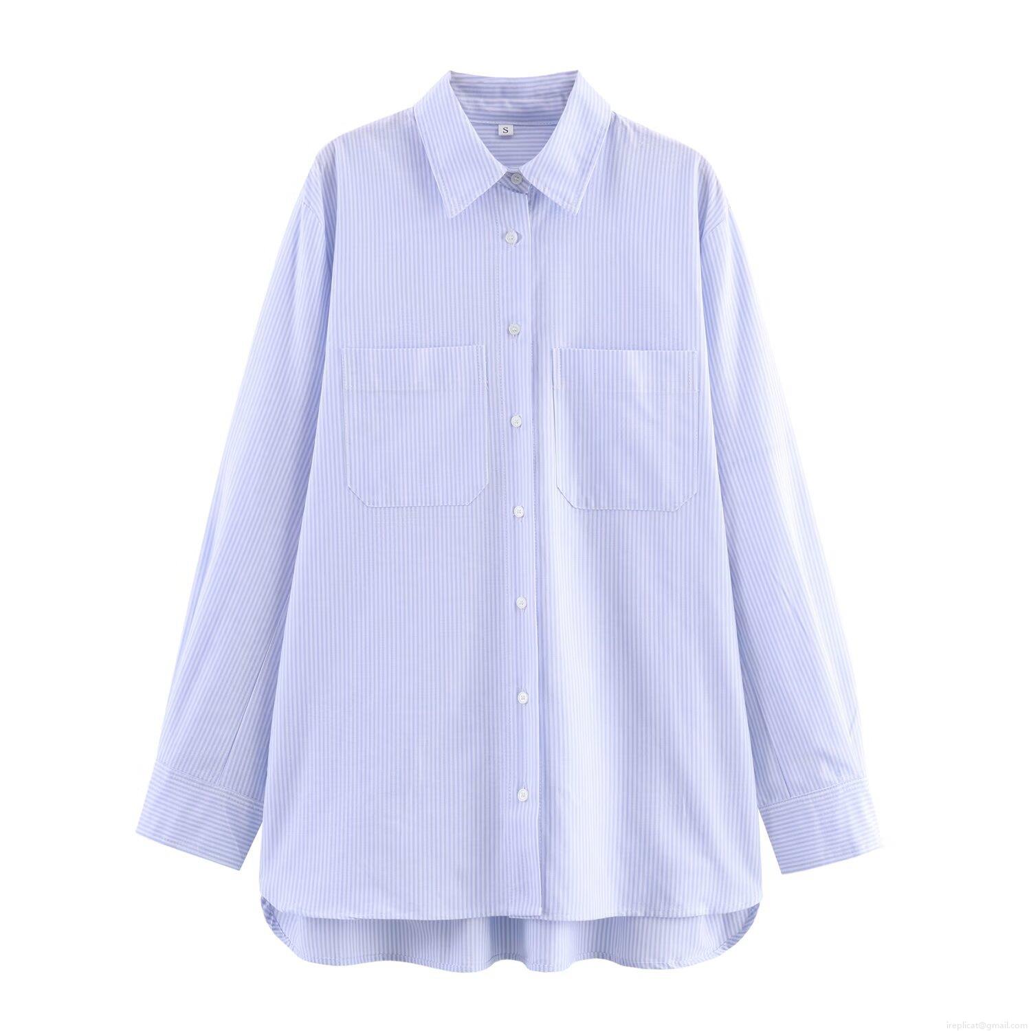 • Women Casual Striped Long Sleeve Shirt With Pockets Loose Button Down Blouse Polyester Cotton Blend Autumn Top Office Lady Apparel