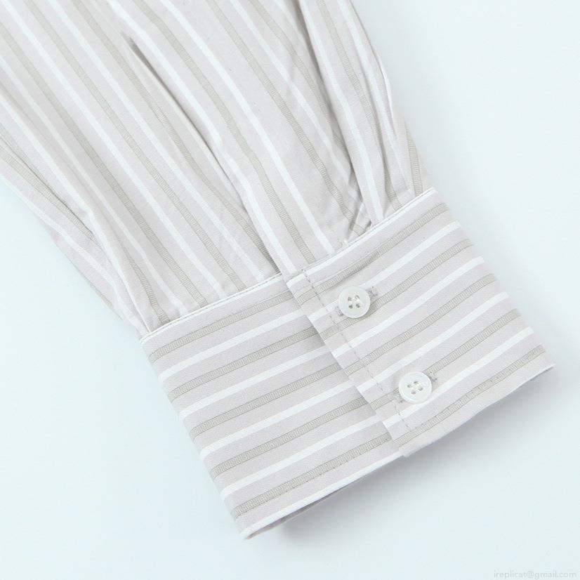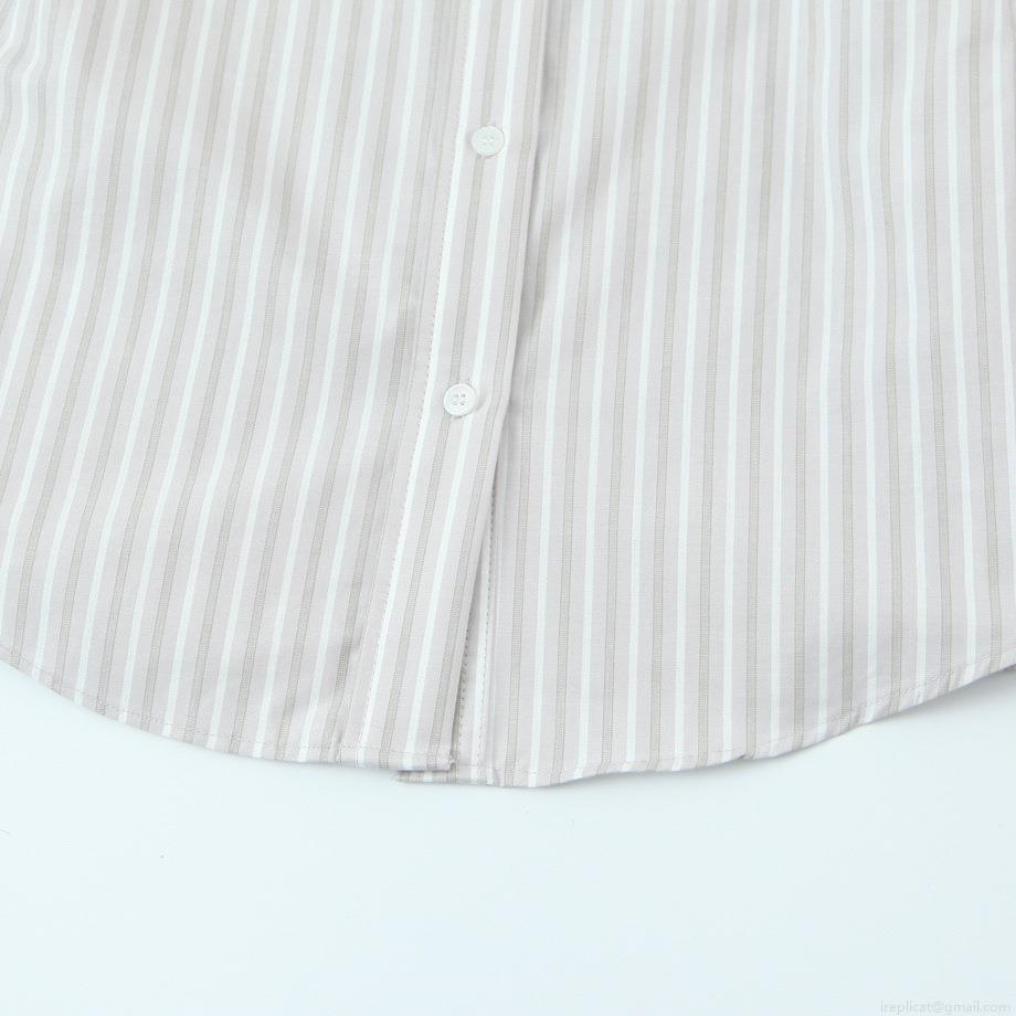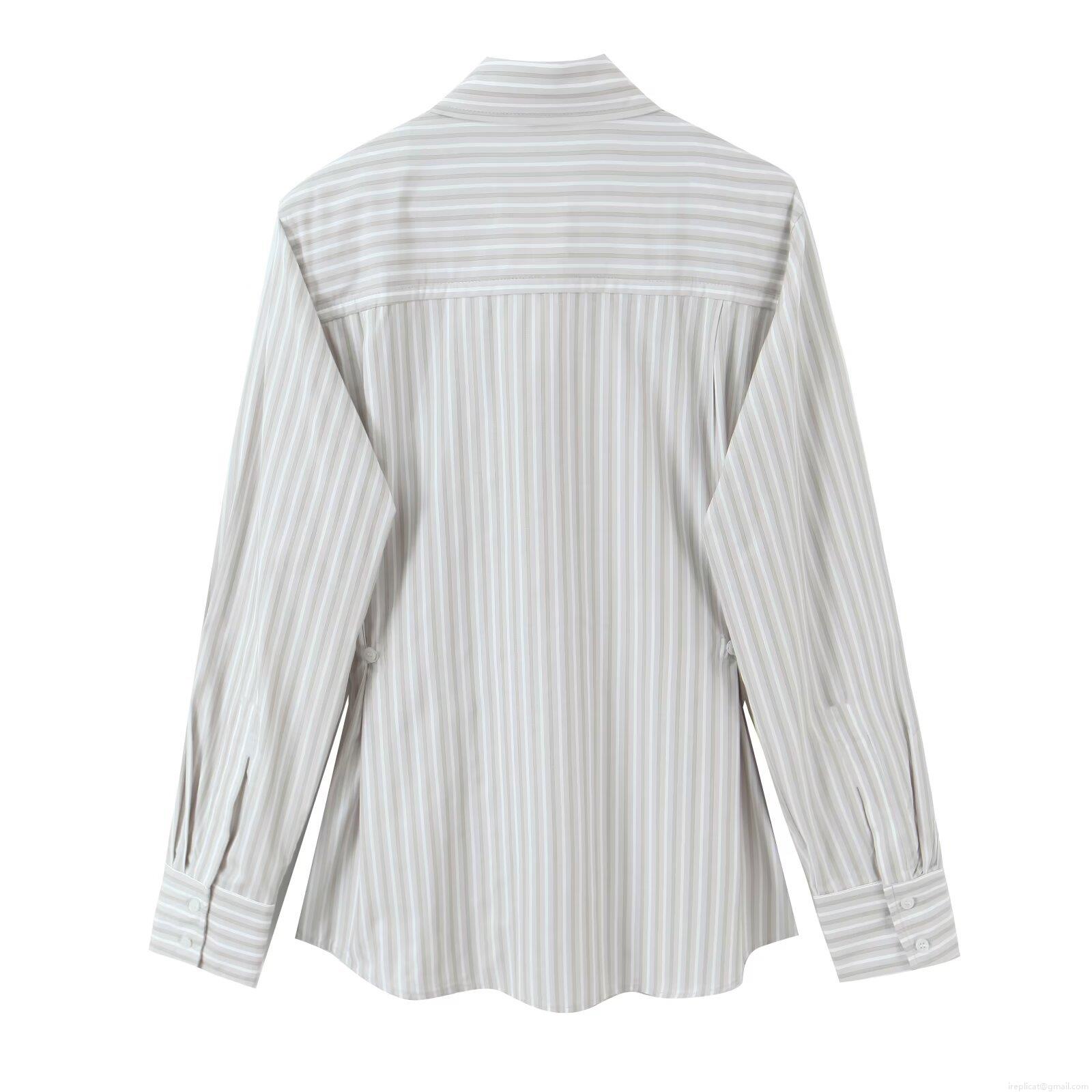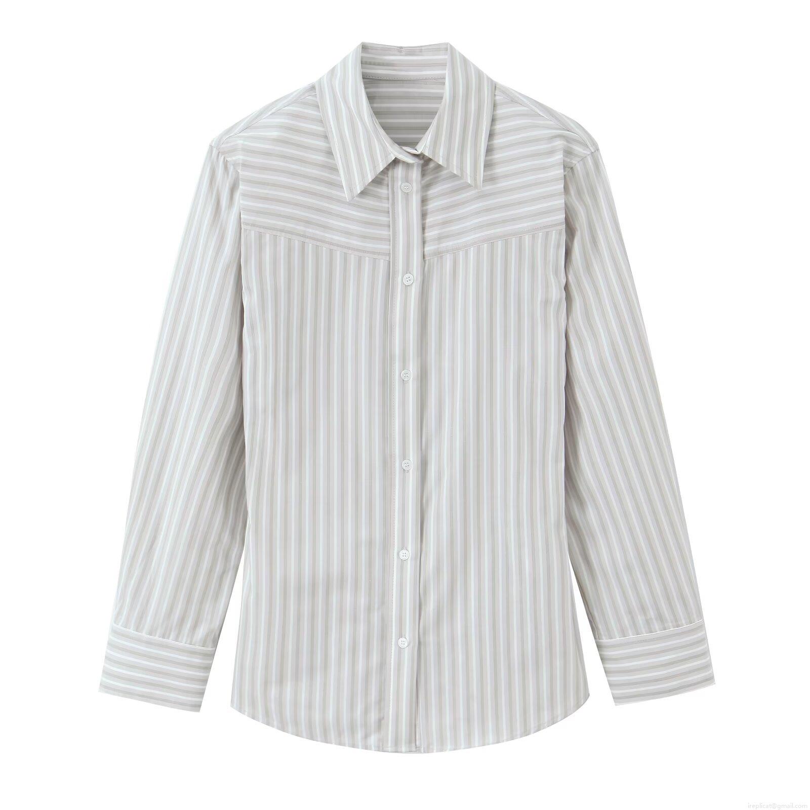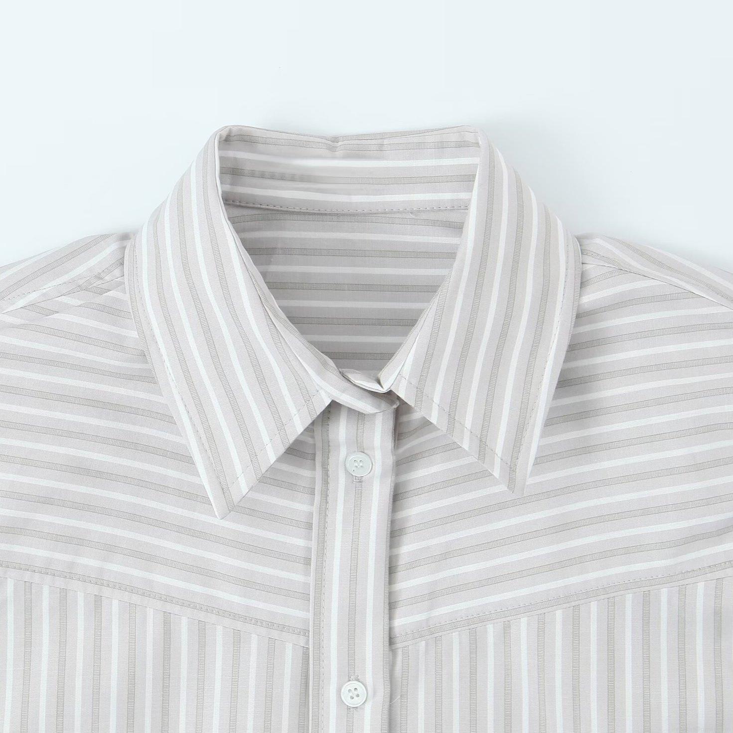 • Women Casual Striped Poplin Shirt Lapel Long Sleeve Single Breasted Blouse Office Commute Button Down Tops Polyester Spandex Grey White Stripe Shirt