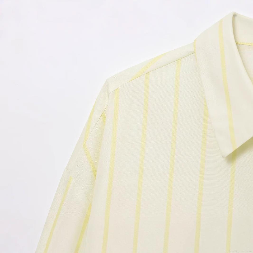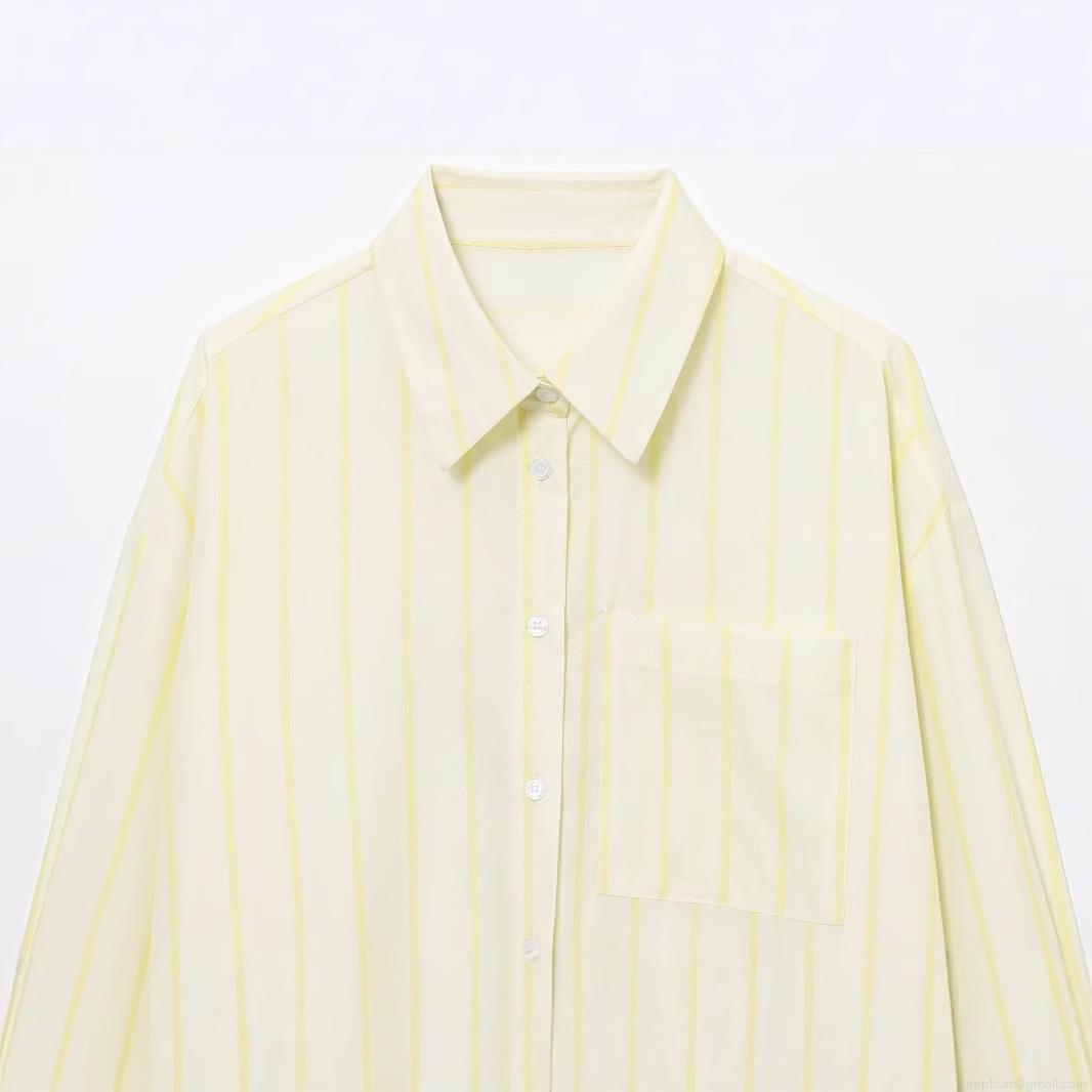 • Women Casual Vertical Striped Long Sleeve Shirt Button Down Lapel Collar Blouse With Chest Pocket Loose Fit Polyester Tops For Daily Office Wear