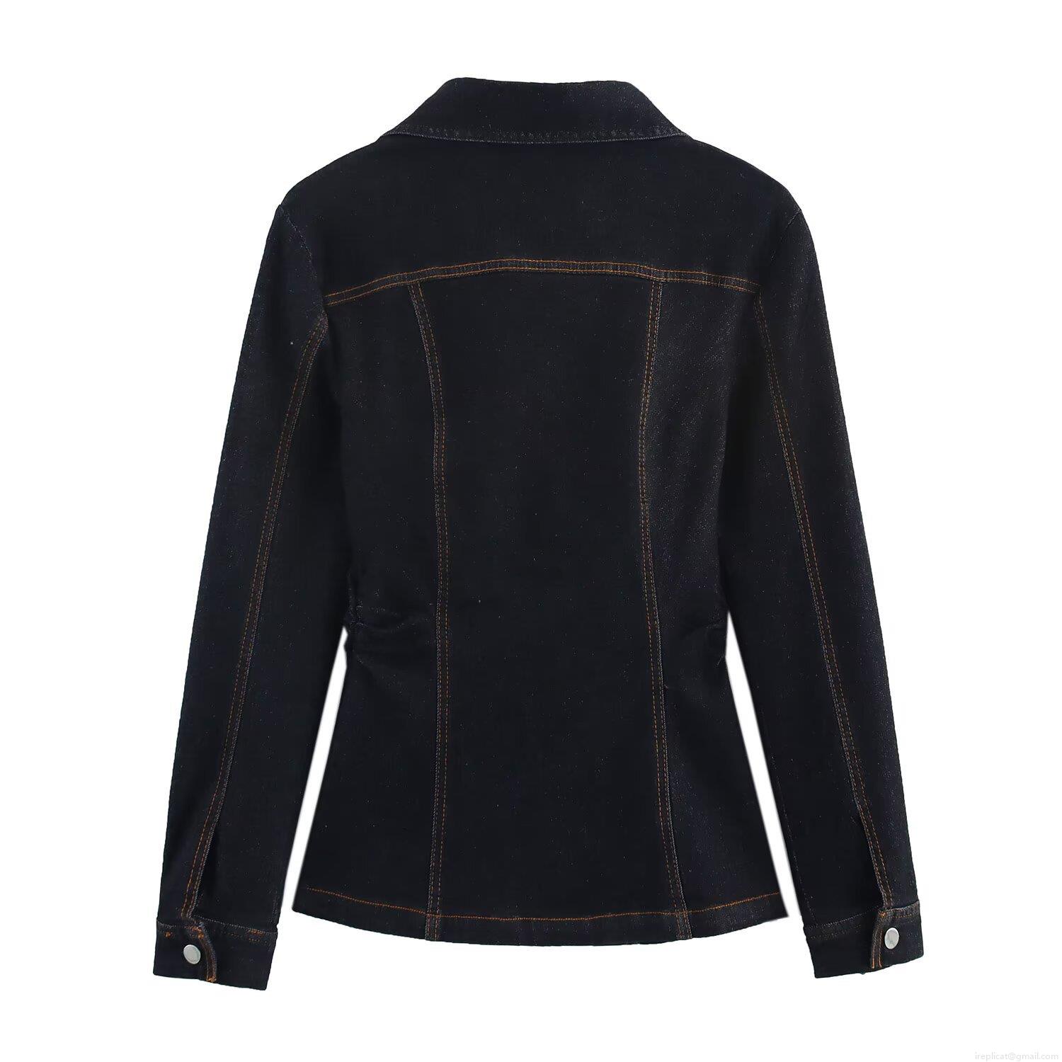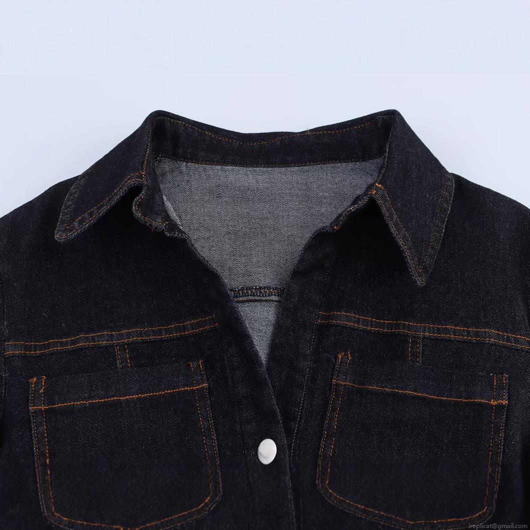 • Women Denim Long Sleeve Shirt Slim Fit Turn-down Collar Button Down Blouse Top With Contrast Stitching Casual Streetwear Office Lady