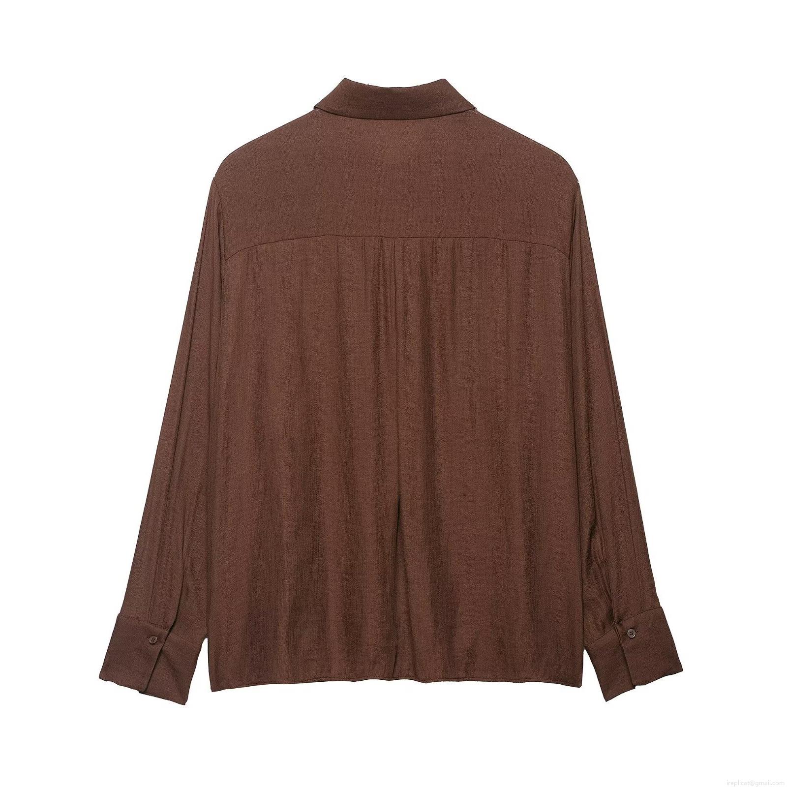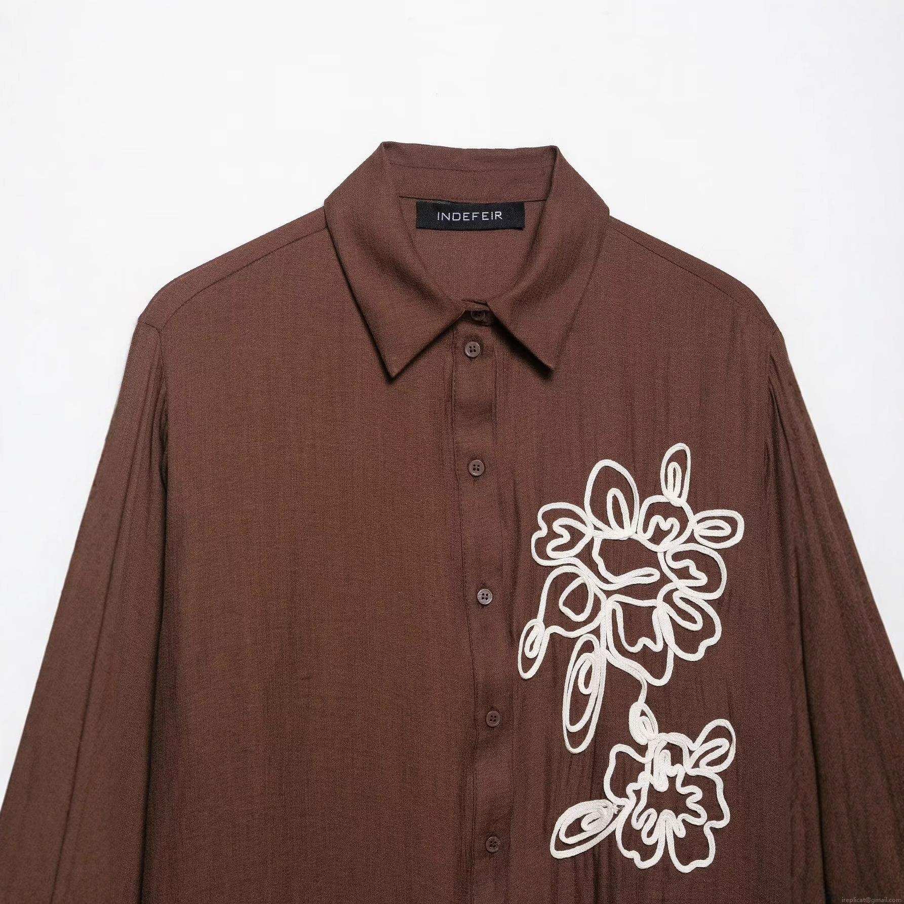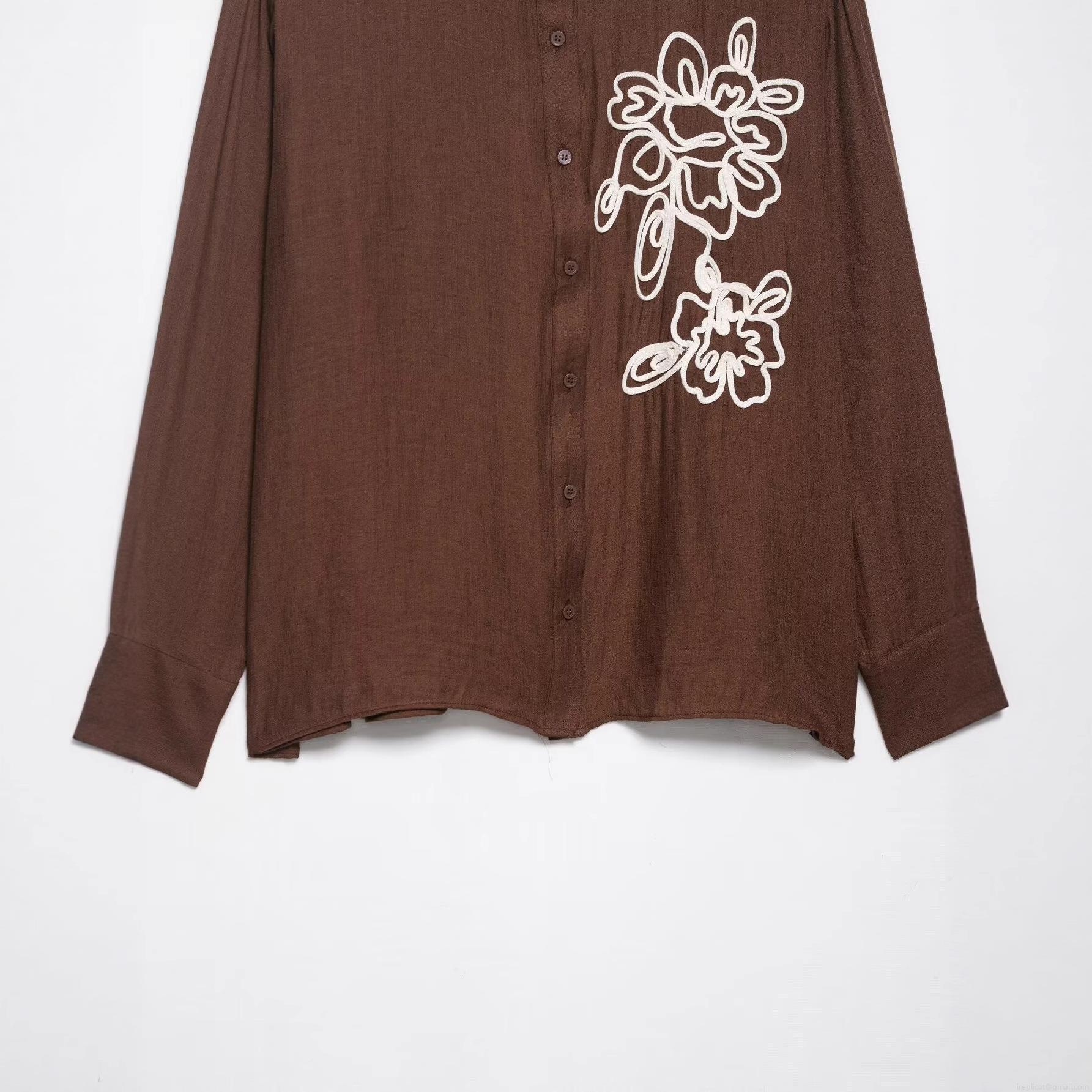 • Women Elegant Floral Embroidery Blouse Textured Long Sleeve Button Down Shirt Polyester Fabric Top For Daily Office Wear