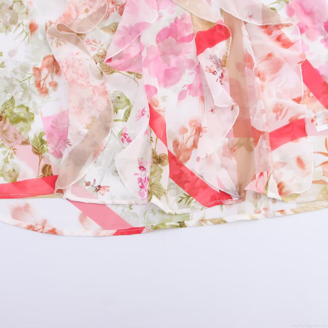 Floral Pattern, Ruffles, Plants And Flowers, Printing, Neckband, Layered Decoration