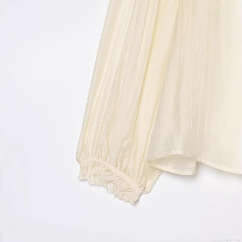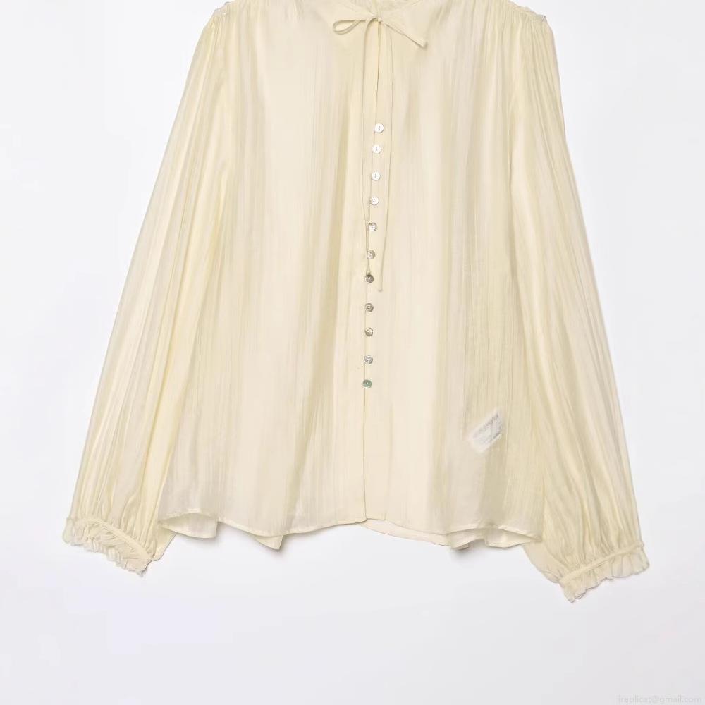 • Women Elegant Long Sleeve Blouse Bow Tie Stand Collar Pleated Shirt With Ruffle Cuffs Solid Color Casual Polyester Tops For Ladies