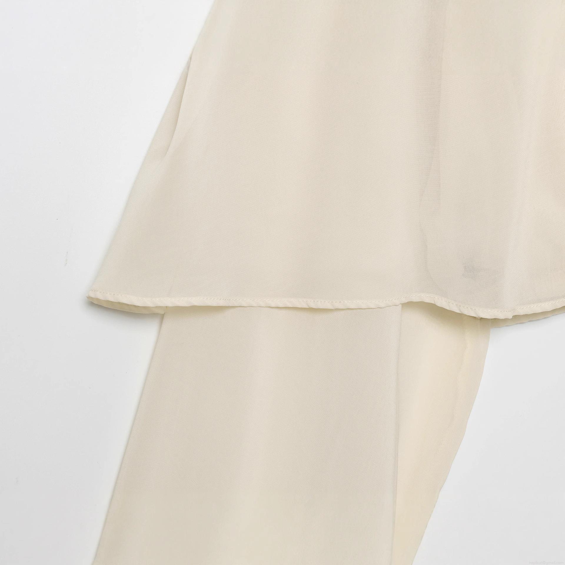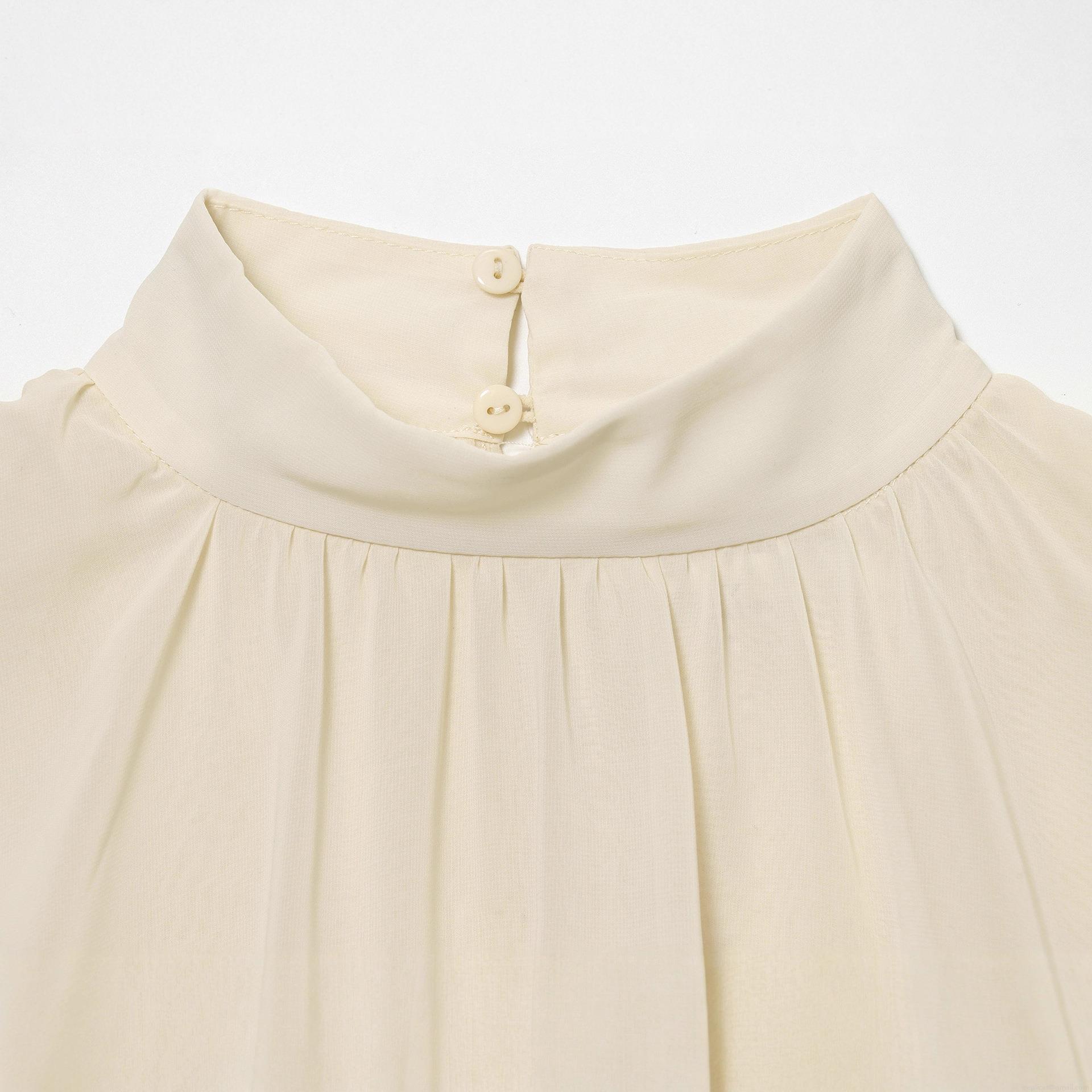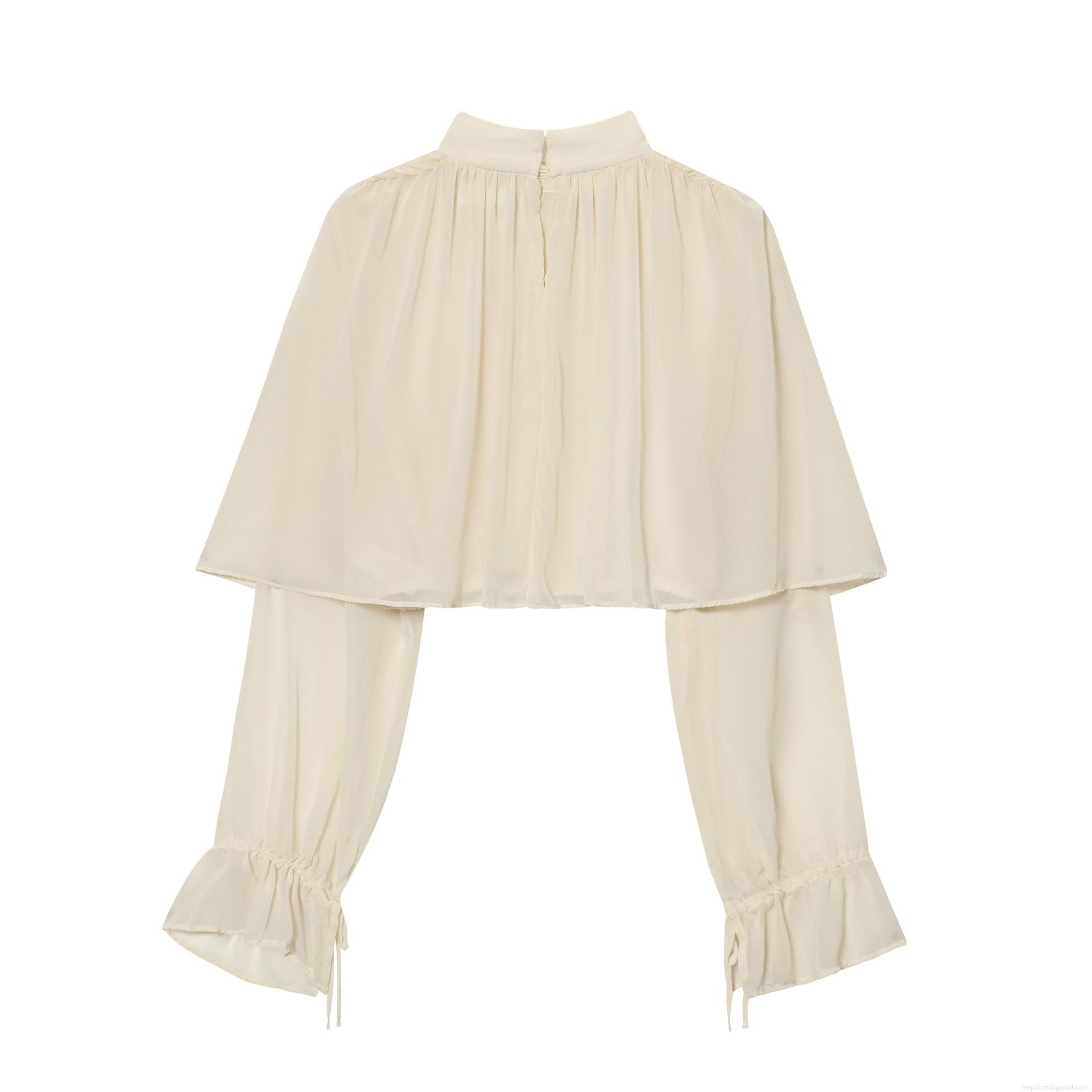 • Women Elegant Mock Neck Chiffon Blouse Double Layered Cape Design Top Long Lantern Sleeve Pleated Ruffle Cuffs Solid Color Casual Party Shirt For Lady