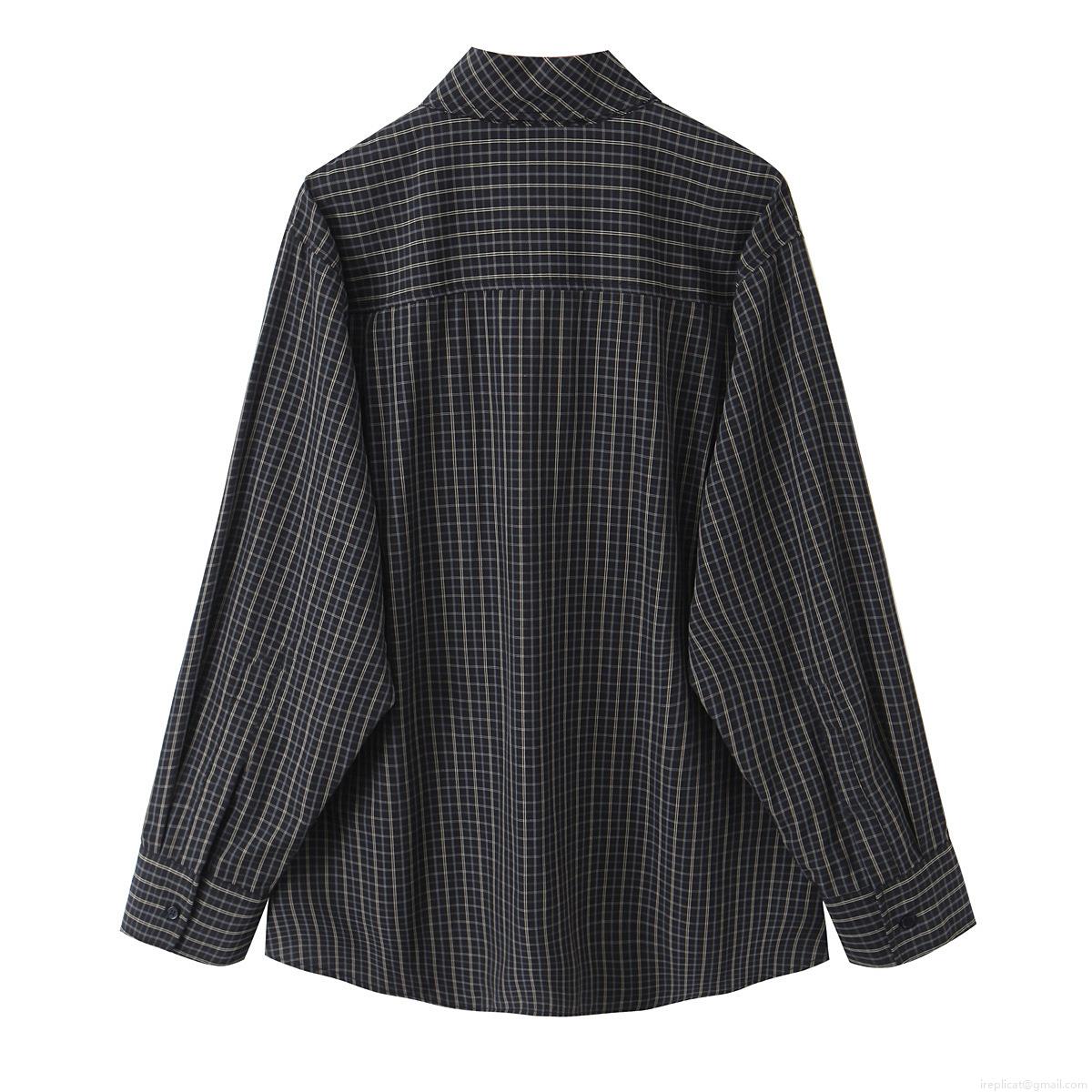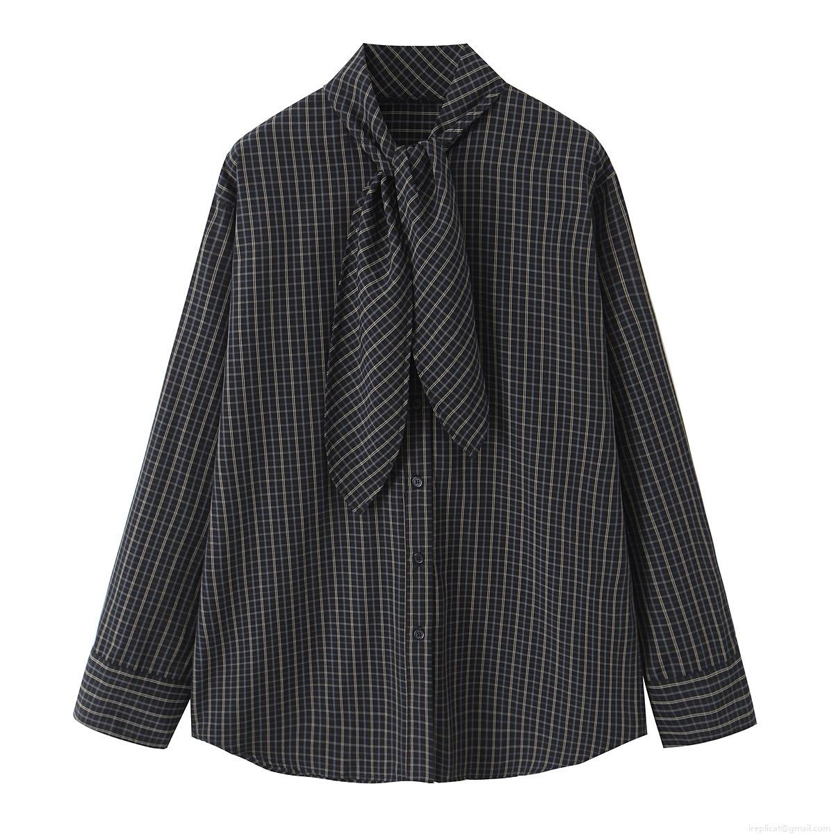 • Women Elegant Plaid Long Sleeve Shirt With Bow Tie Neck Casual Blouse Polyester Cotton Blend Button Down Tops For Office Daily Wear