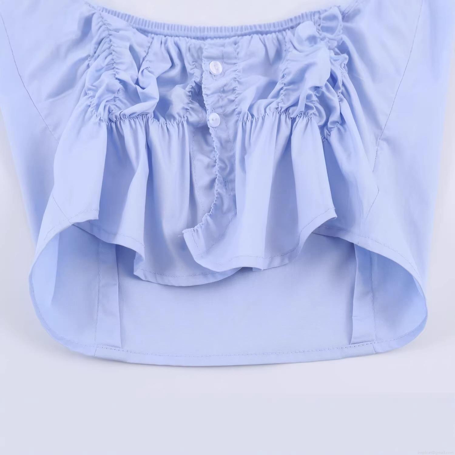 • Women Elegant Ruched Front Poplin Shirt Solid Color Long Sleeve Button Up Blouse Slim Fit Office Lady Work Tops Sky Blue