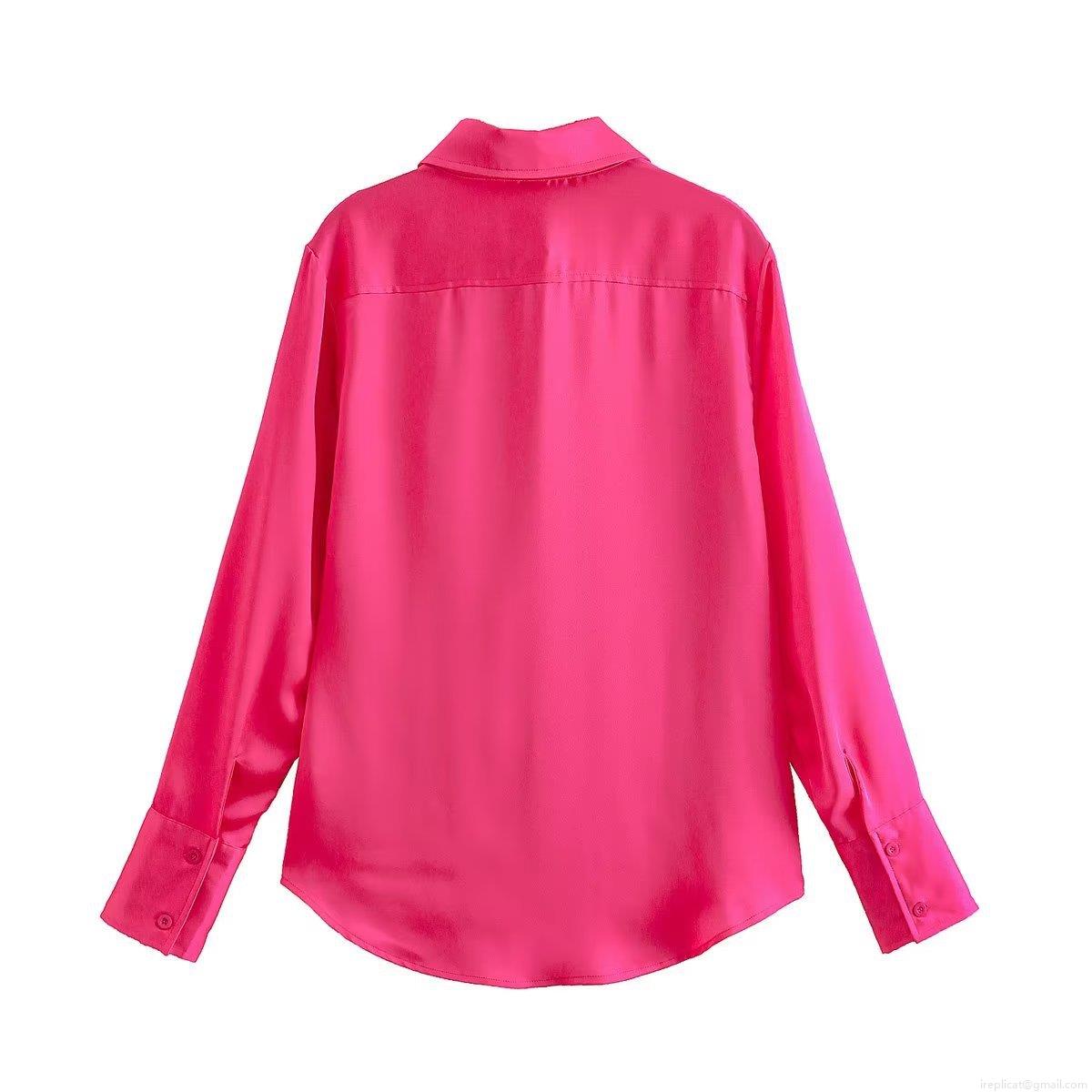 Women Elegant Satin Blouse Long Sleeve Button Down Shirt Solid Color Loose Fit Turn Down Collar Casual Office Streetwear Chic Ladies Silk Like Tops