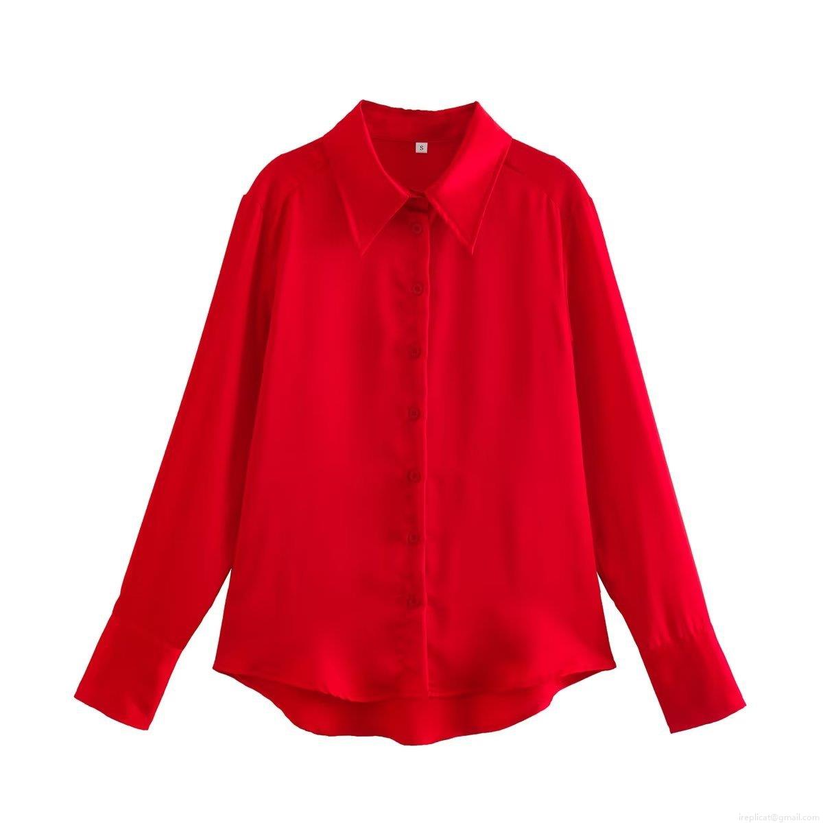 • Women Elegant Satin Blouse Long Sleeve Button Down Shirt Solid Color Loose Fit Turn Down Collar Casual Office Streetwear Chic Ladies Silk Like Tops
