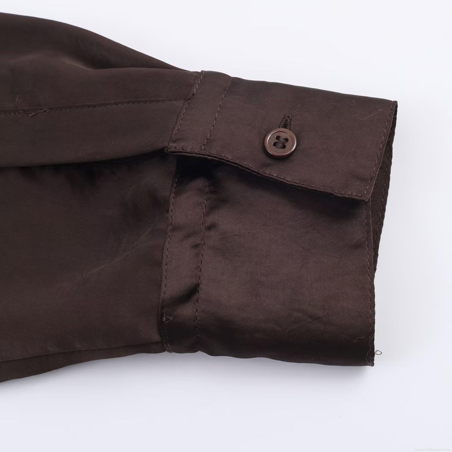 • Women Elegant Satin Blouse Long Sleeve Turn-down Collar Shirt with Adjustable Drawstring Hem Casual Loose Fit Deep Brown Solid Color Top Office Wear