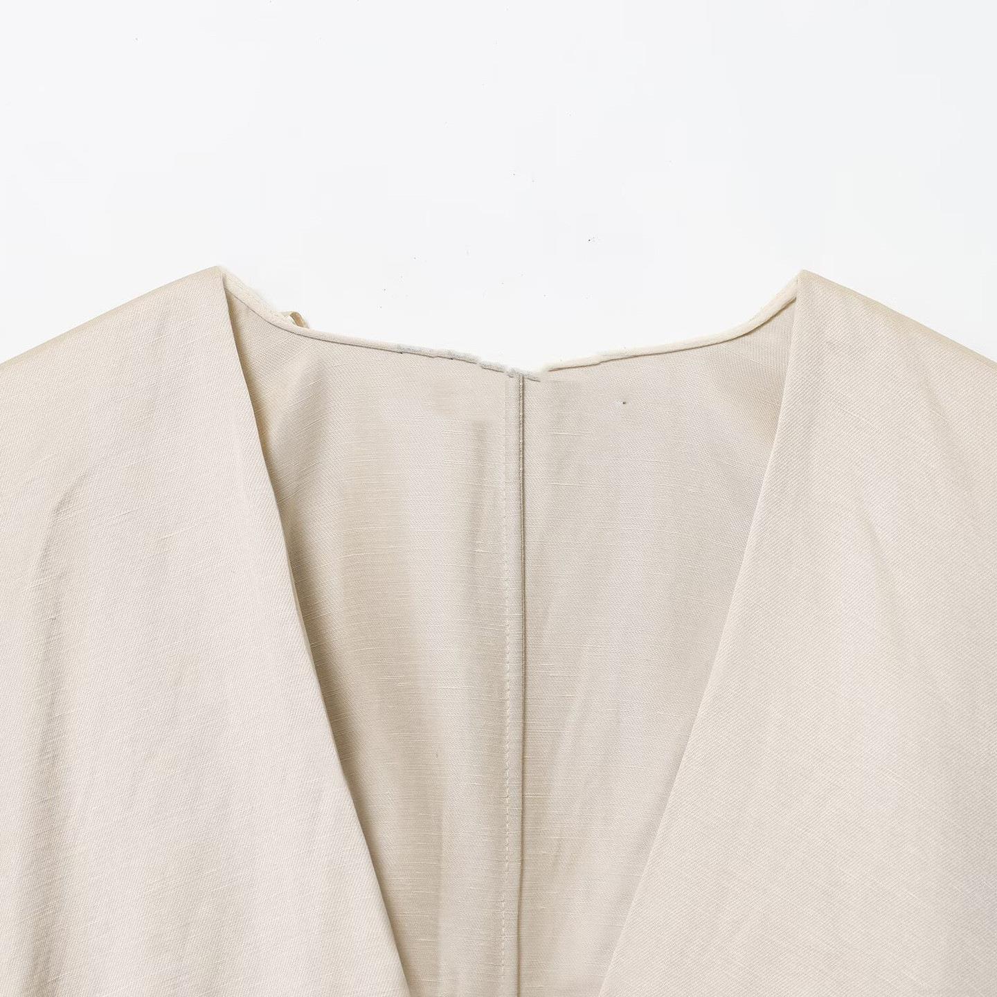 Solid Color, Bow, Belt, Satin, V-neck