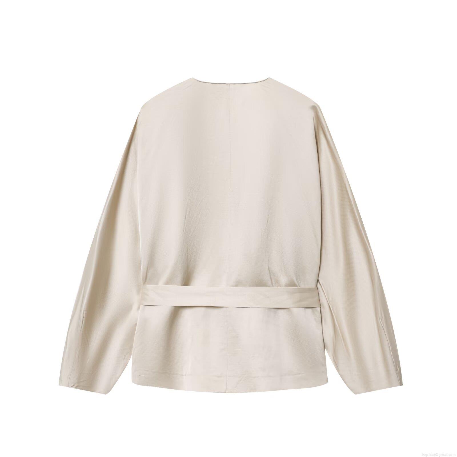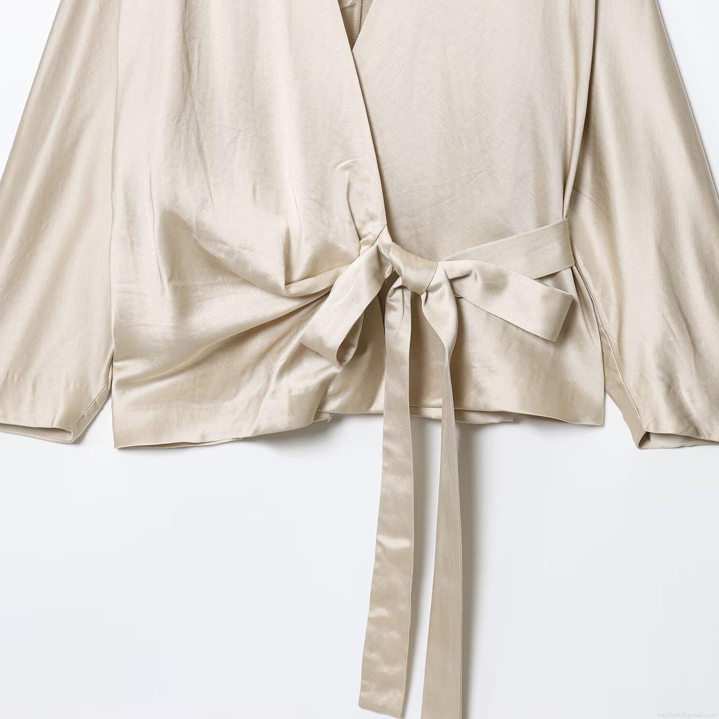 • Women Elegant Satin V-Neck Blouse Long Sleeve Wrap Top With Bow Tie Waist Solid Color Polyester Spandex Casual Shirt For Office Lady