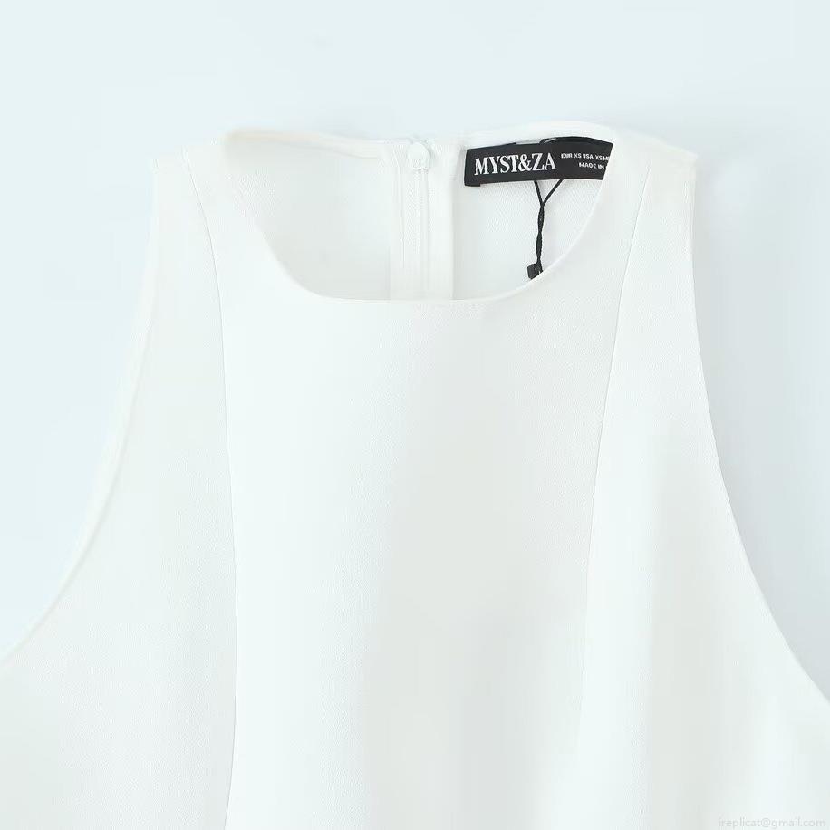 • Women Elegant Sleeveless Peplum Top Round Neck Polyester Spandex Blend Solid Color Back Invisible Zipper Slim Fit Blouse For Office Commute Daily Wear