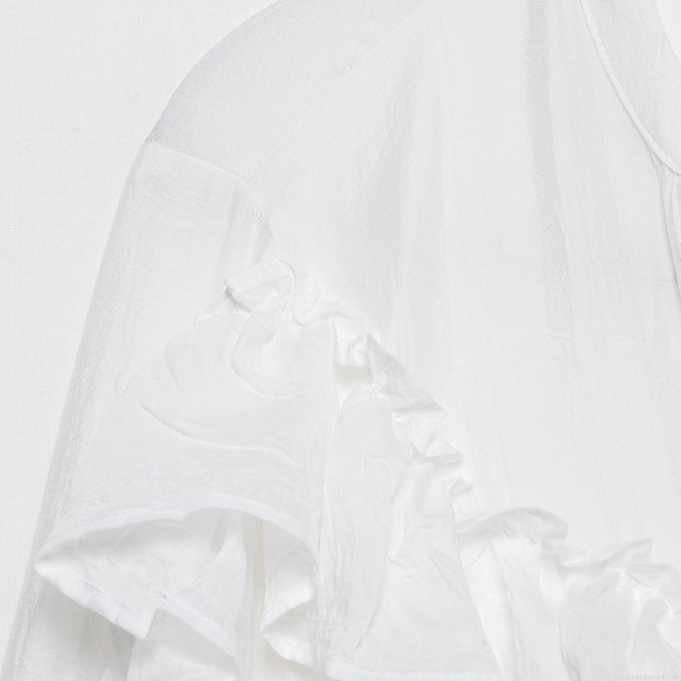 Solid Color, Wood Ear Edge, Pleats, Ruffles, V-neck