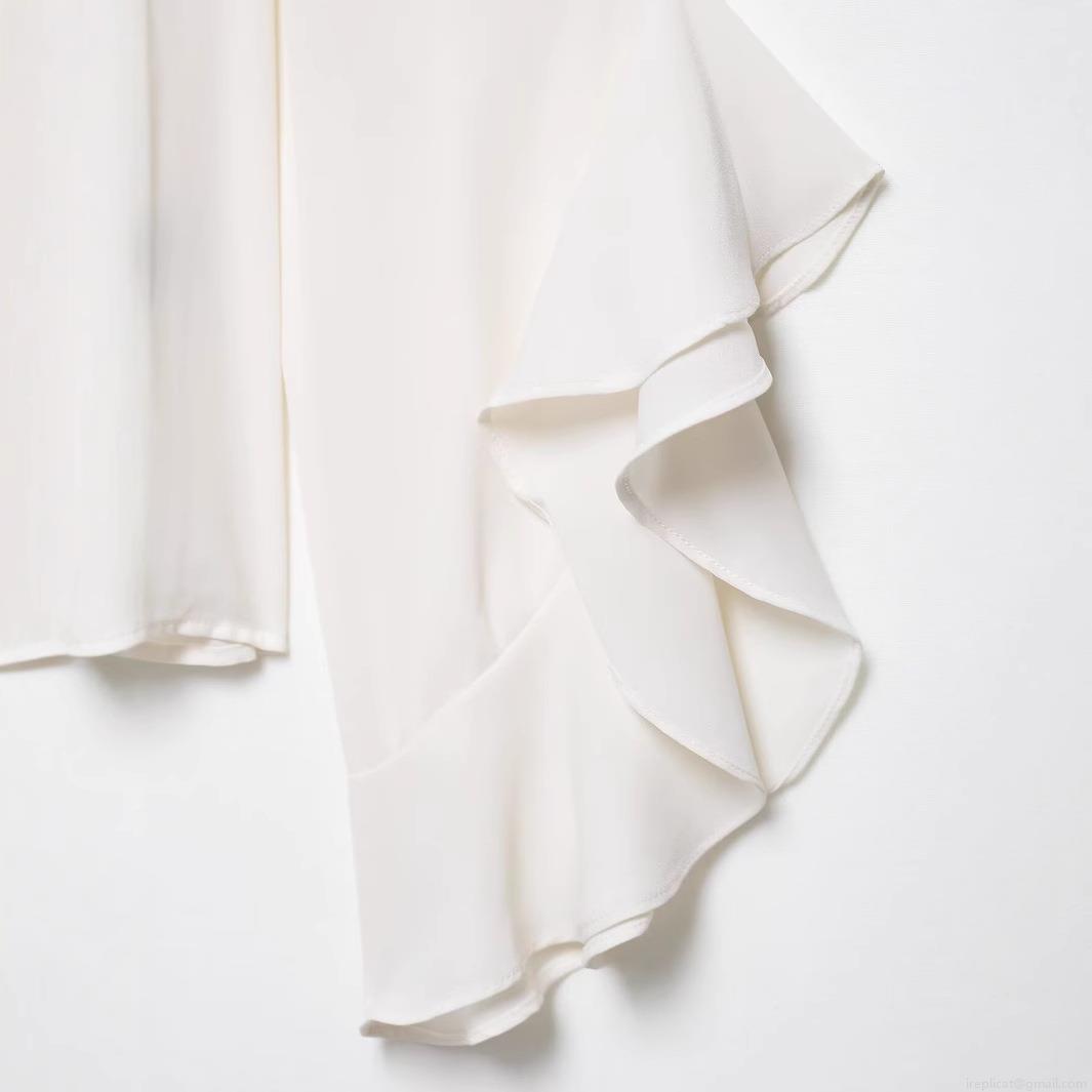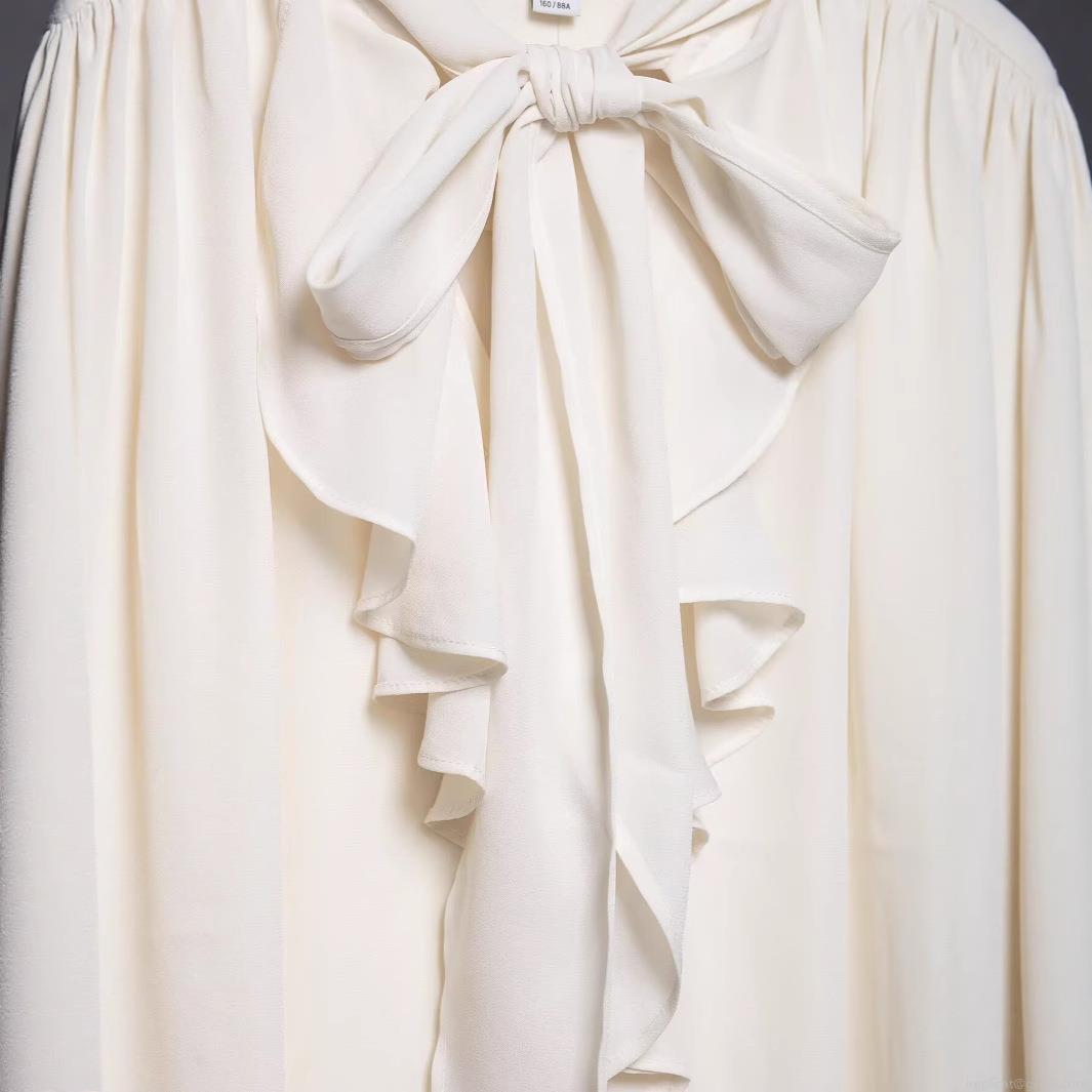 • Women Elegant White Chiffon Blouse Bow Tie Neck Ruffle Batwing Sleeve Loose Shirt Top For Office Party Dating