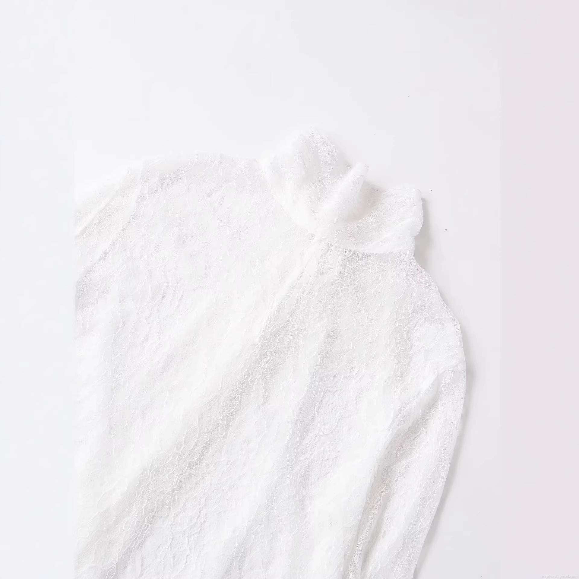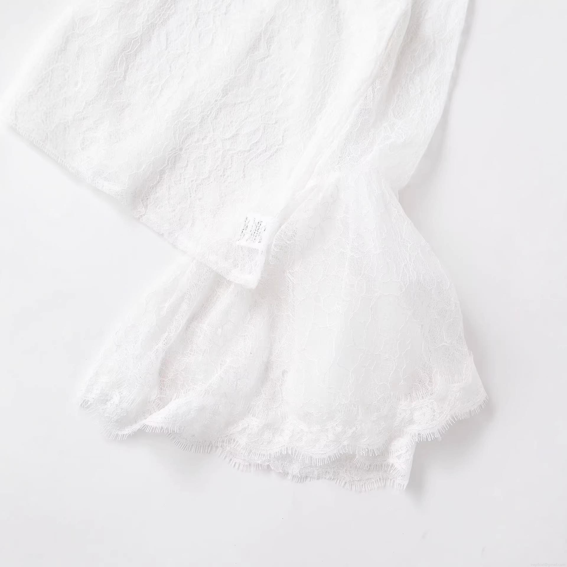 • Women Elegant White Lace Blouse Long Flare Sleeve Patchwork Shirt Retro Half High Neck Stand Collar Tie Hem Sheer Tops For Streetwear Party Daily
