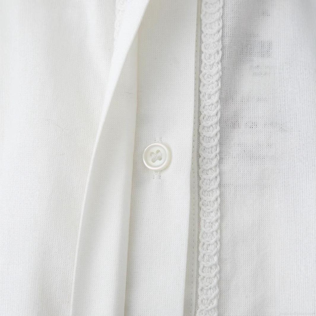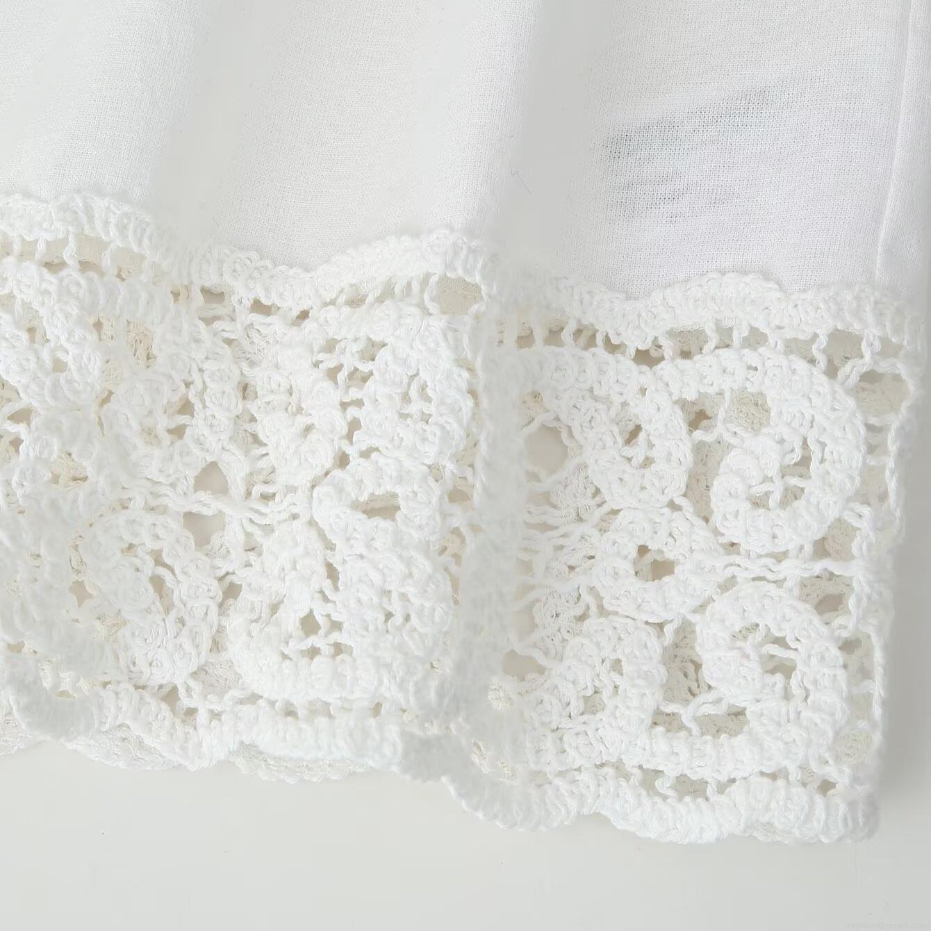• Women Elegant White Long Sleeve Shirt With Crochet Lace Patchwork Turn-down Collar Single Breasted Office Commute Blouse Solid Color Loose Fit Casual Top For Women