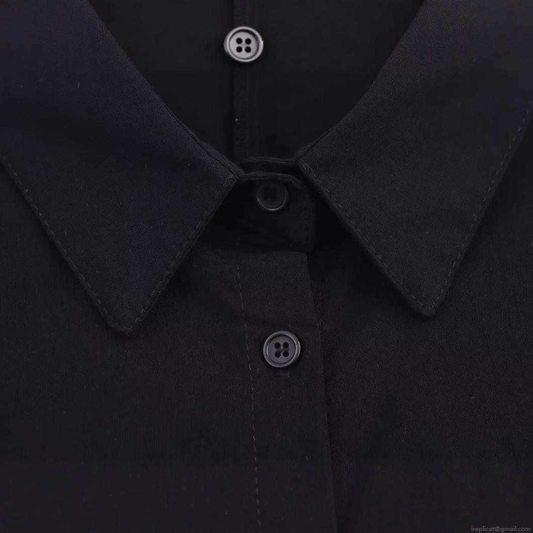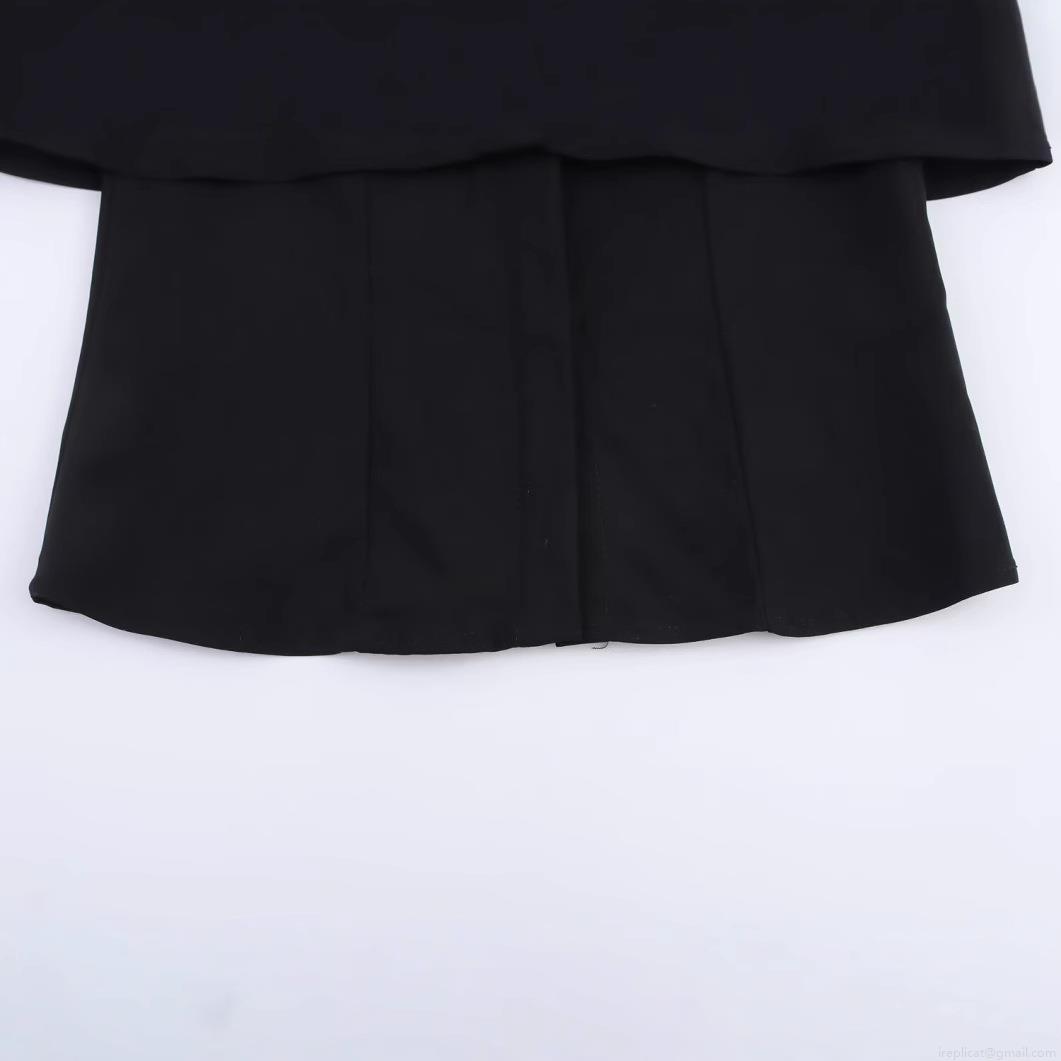 • Women European Style Lapel Short Sleeve Black Shirt Double Layer Design Patchwork Streetwear Casual Blouse Top Summer 2025