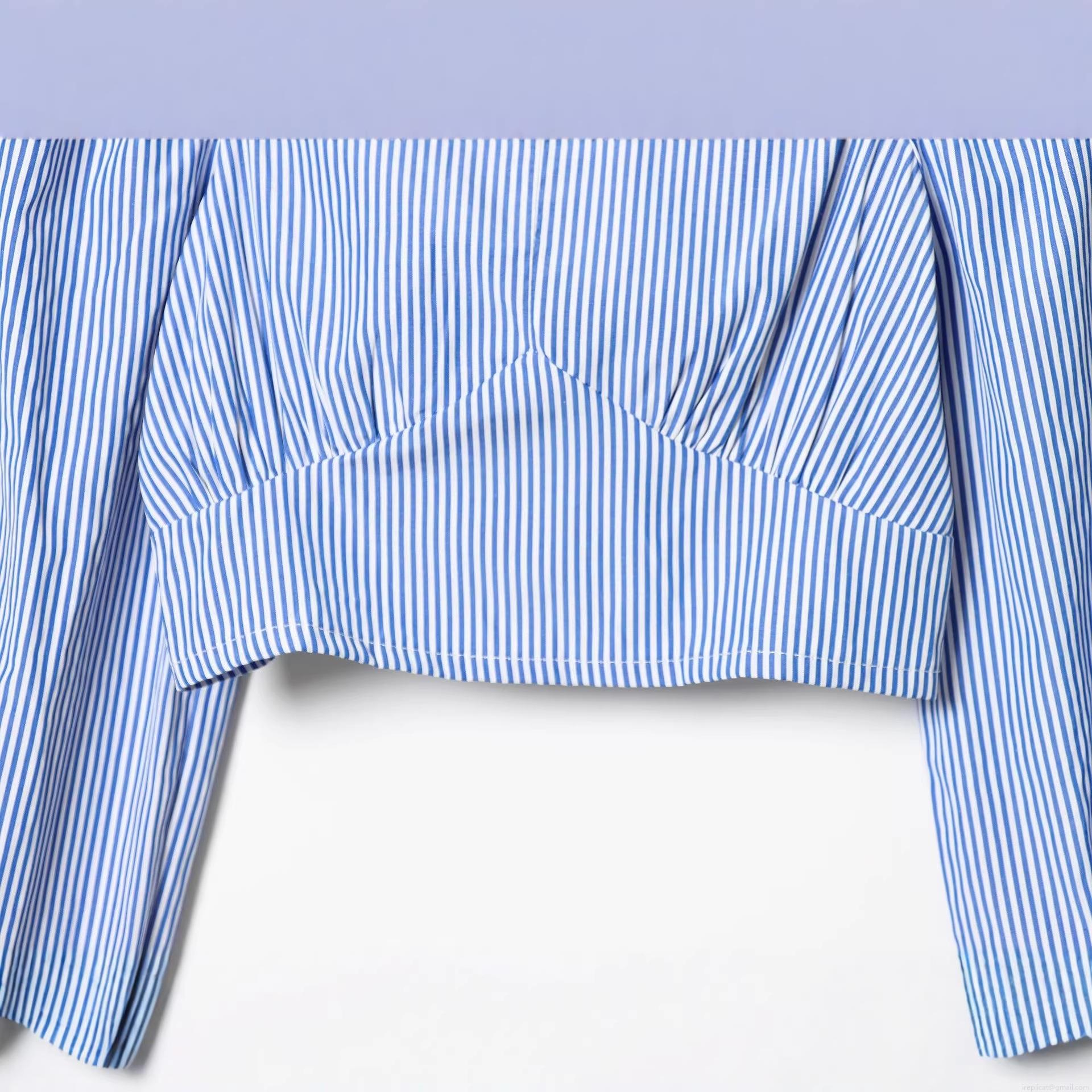 • Women Fashion Blue White Stripe Smocked Square Neck Top Long Puff Sleeve Slim Fit Cropped Blouse Casual Summer Vacation Shirt For Women