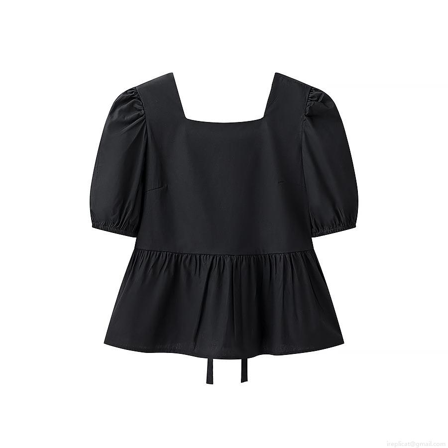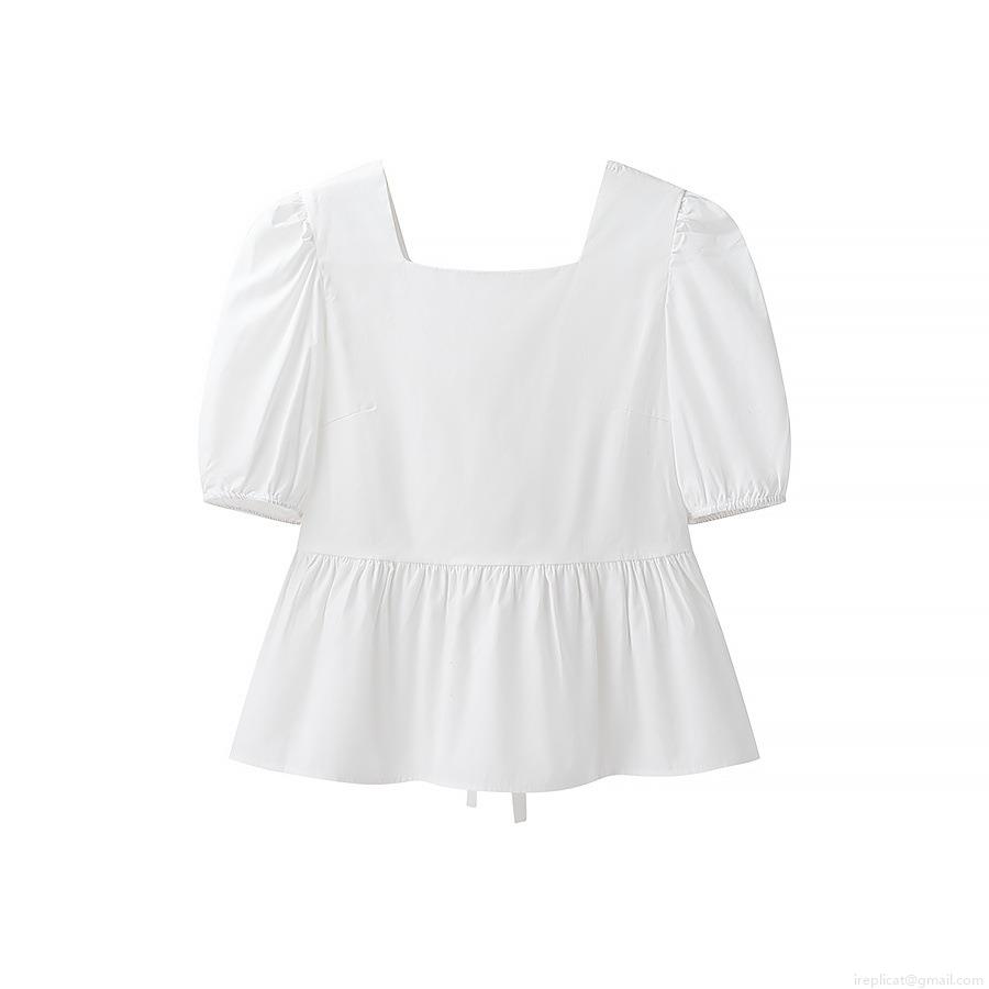 • Women Fashion Square Neck Bubble Sleeve Blouse Sexy Backless Lace-up Shirt Ruffle Hem Short Sleeve Polyester Top For Women Streetwear Summer Clothing