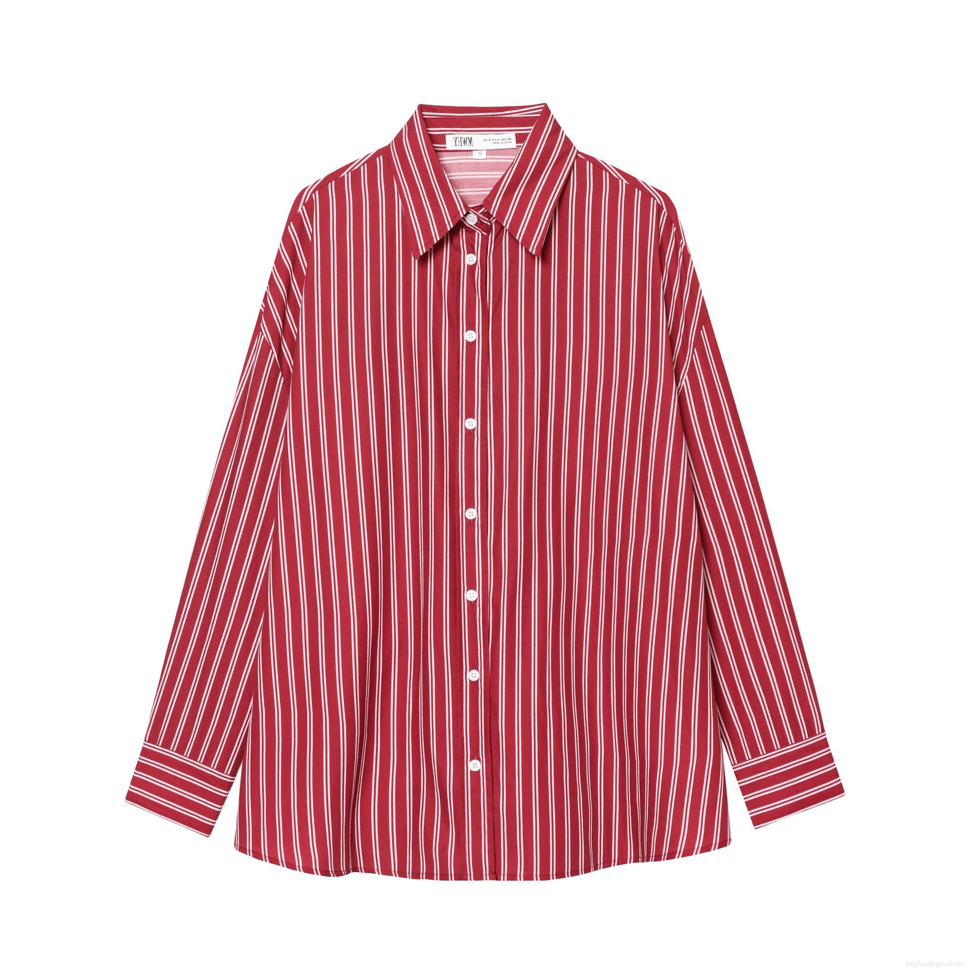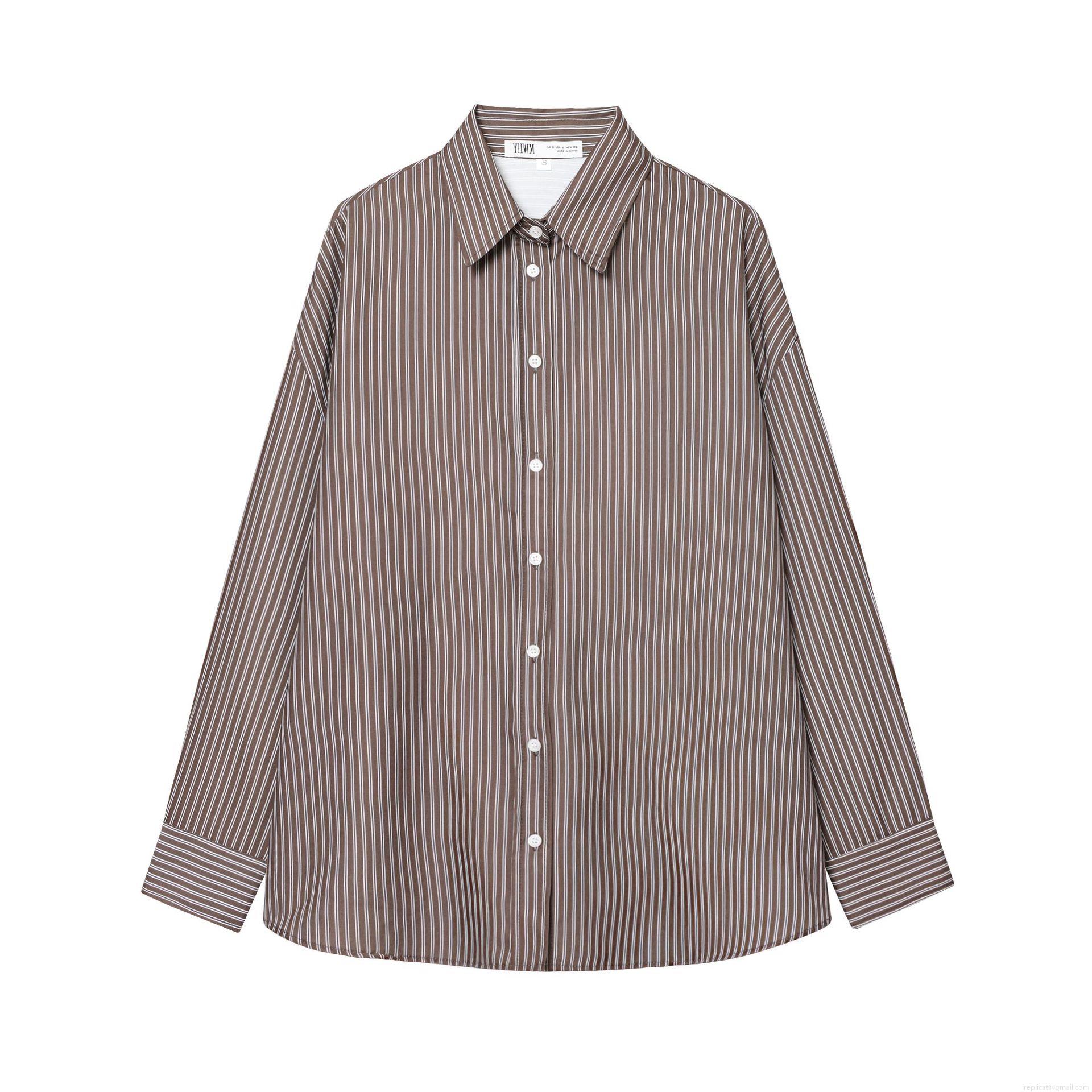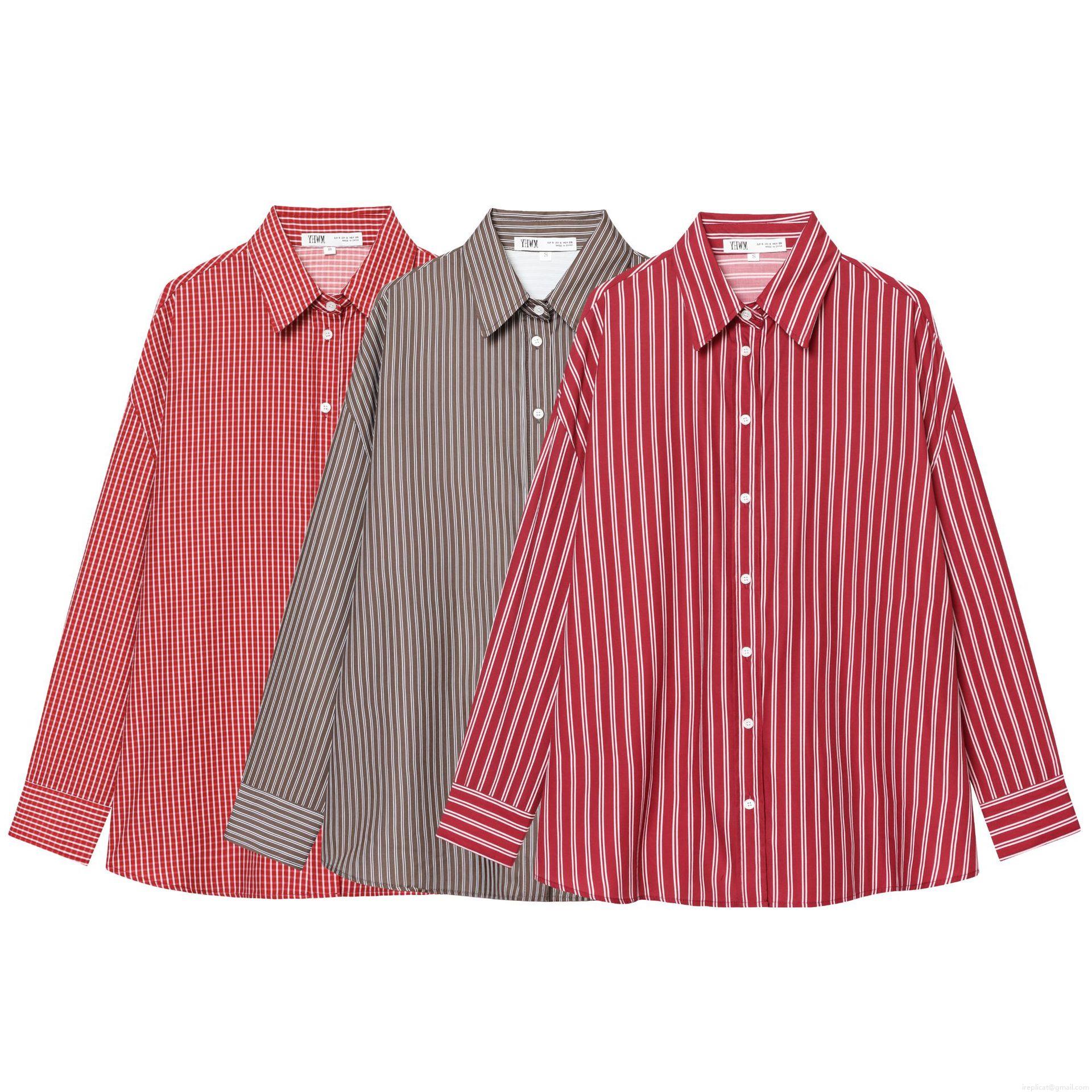 • Women Fashion Stripe Poplin Shirt Beaded Lapel Long Sleeve Cotton Blend Blouse Casual Elegant Button Down Tops For Daily Commuting Office Wear