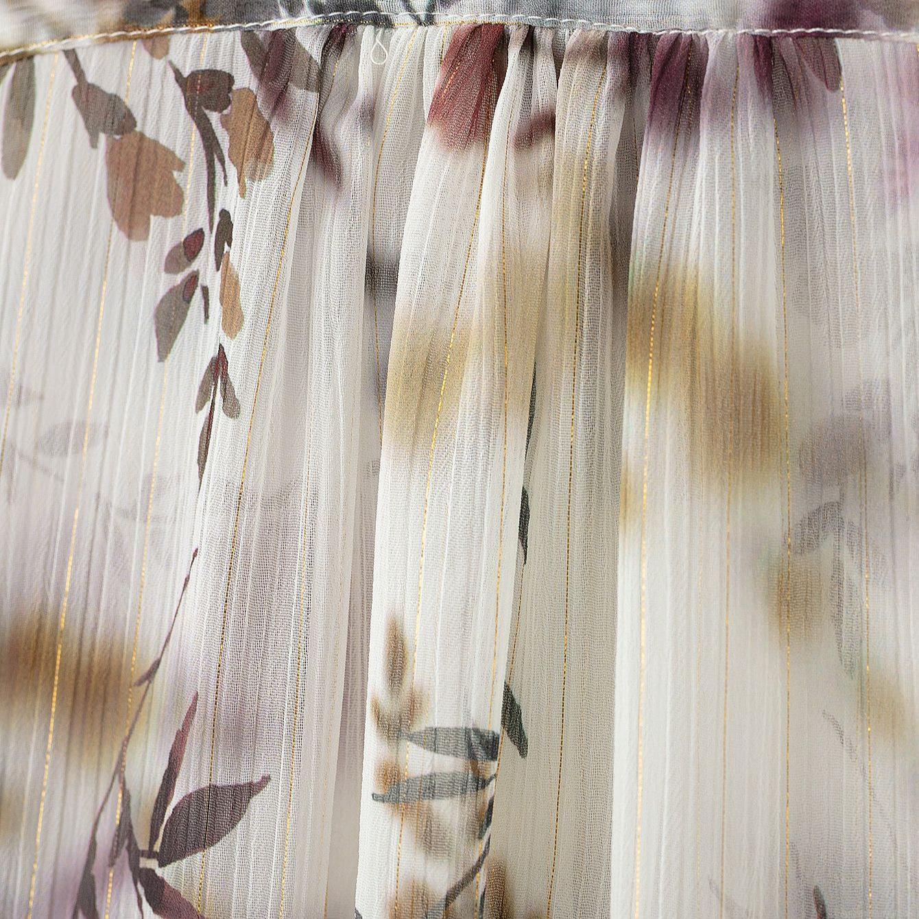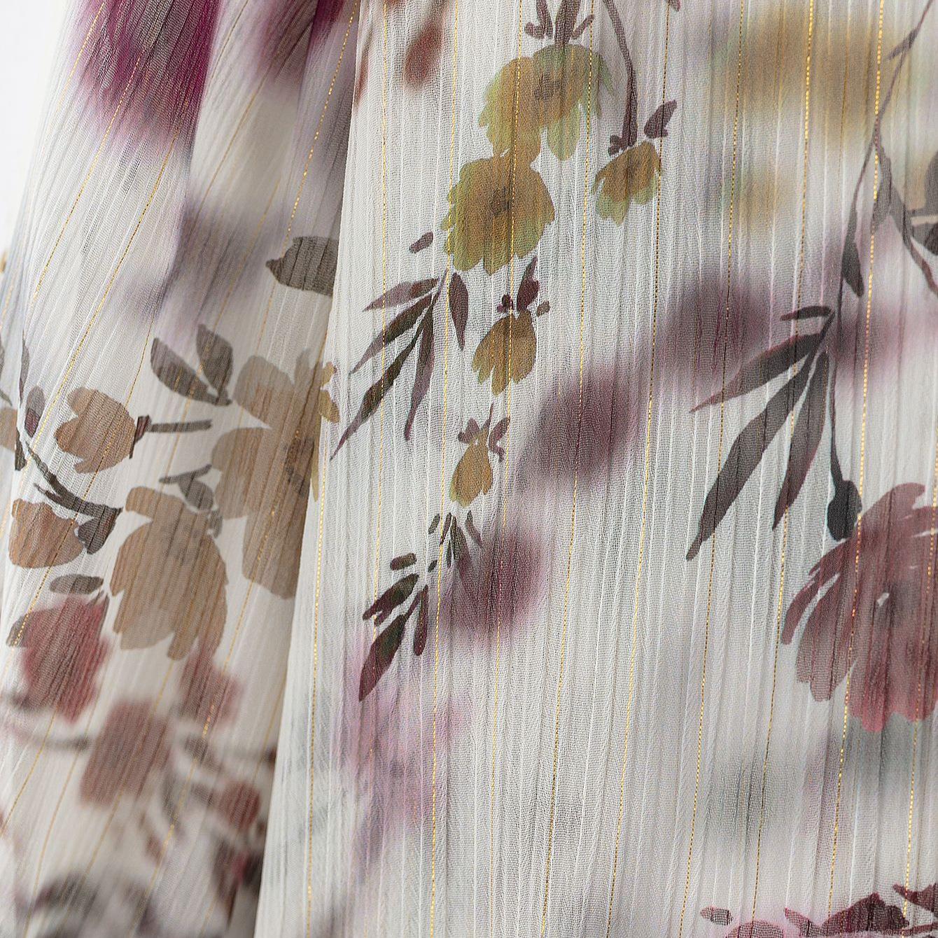Floral Pattern, Plants And Flowers, Ruffled Cuffs, Gold Stripes, Pleats