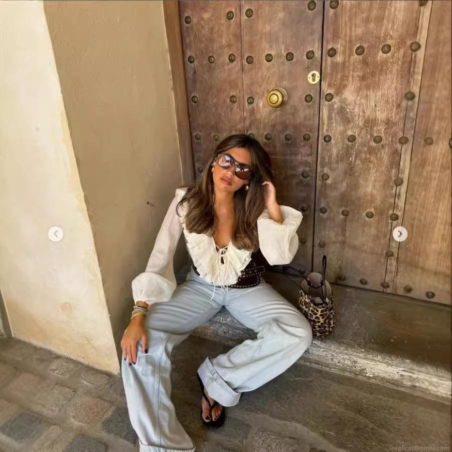 • Women French Style V Neck 100% Polyester Ruffle Chiffon Blouse Long Sleeve Tie Front Solid Color Elegant Sweet Casual Shirt For Women Fashion Tops