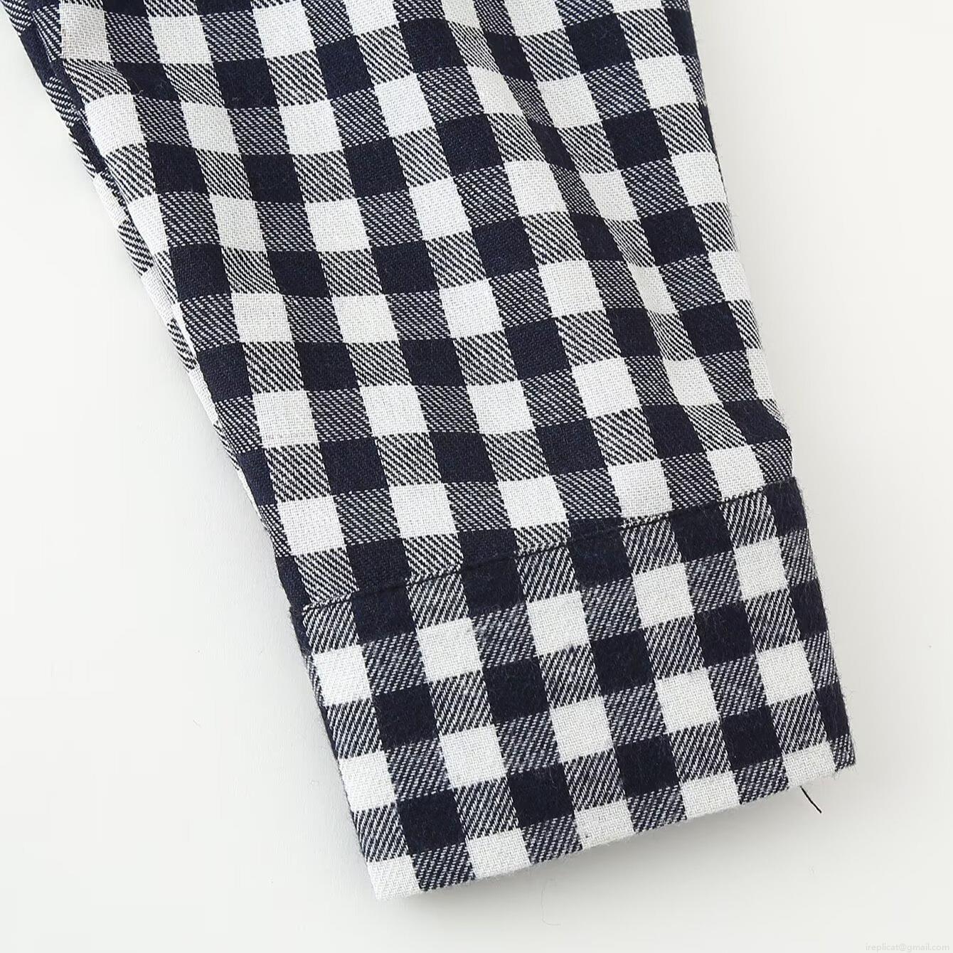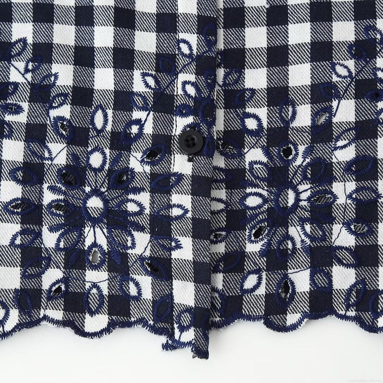 Embroidery, Checkered Pattern, Buttons, Hollow Wavy Edge, Flower Embroidery