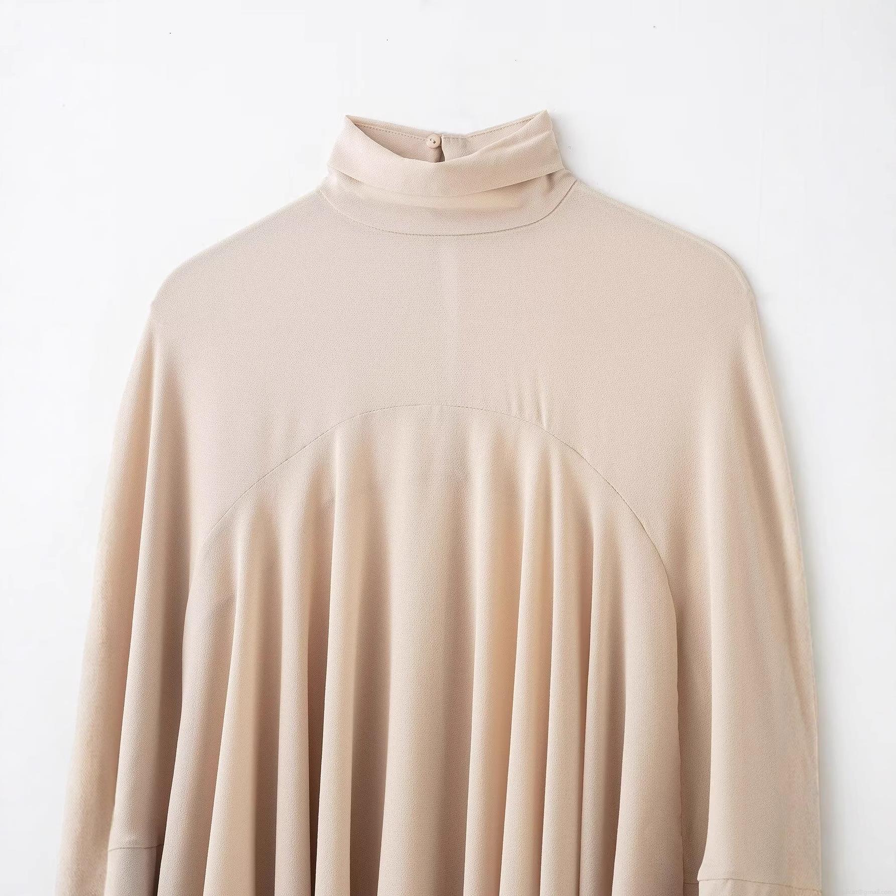 Women High Neck Layered Ruffle Top Elegant Cape Style 100% Polyester Woven Long Sleeve Blouse Casual European Streetwear Solid Champagne Shirt
