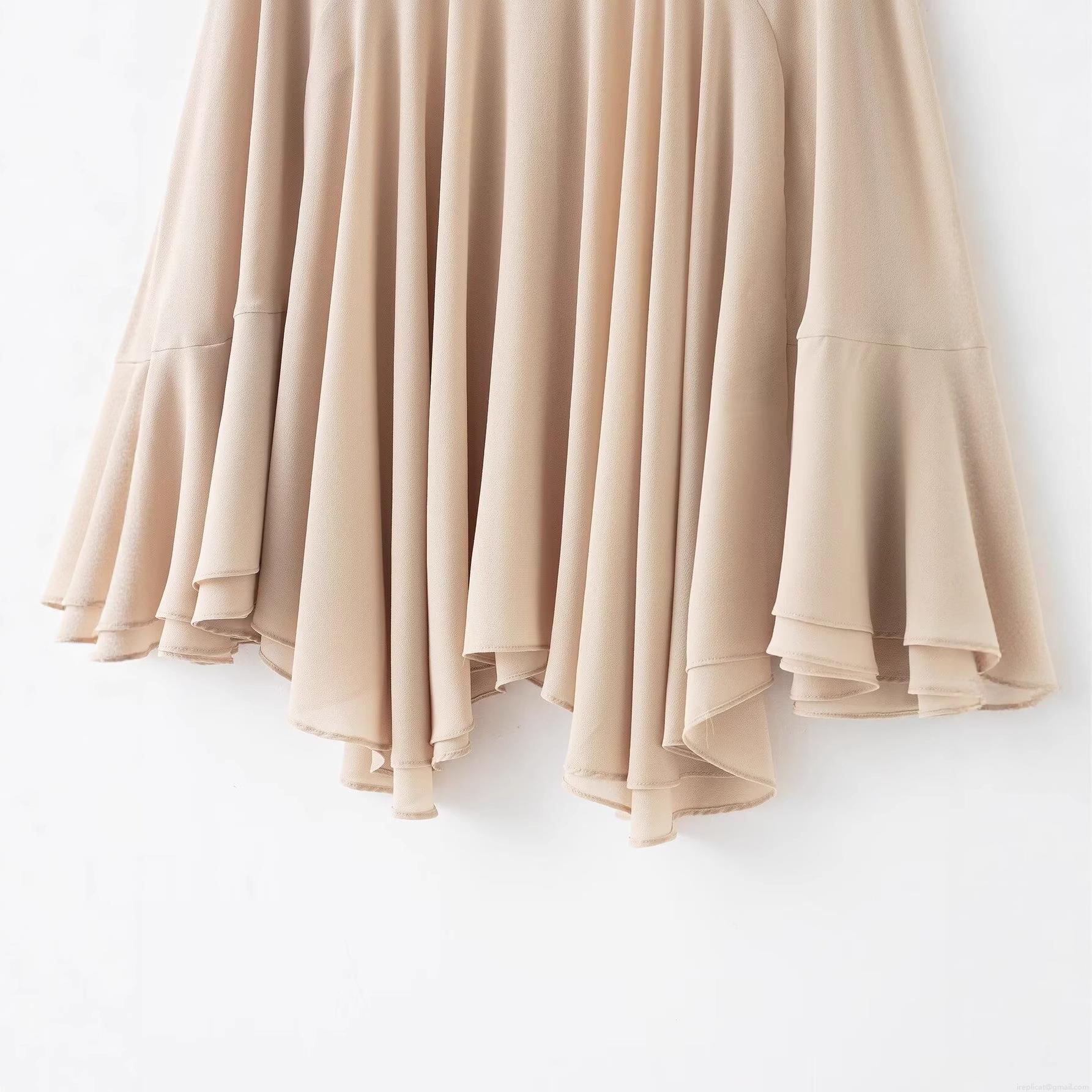 • Women High Neck Layered Ruffle Top Elegant Cape Style 100% Polyester Woven Long Sleeve Blouse Casual European Streetwear Solid Champagne Shirt