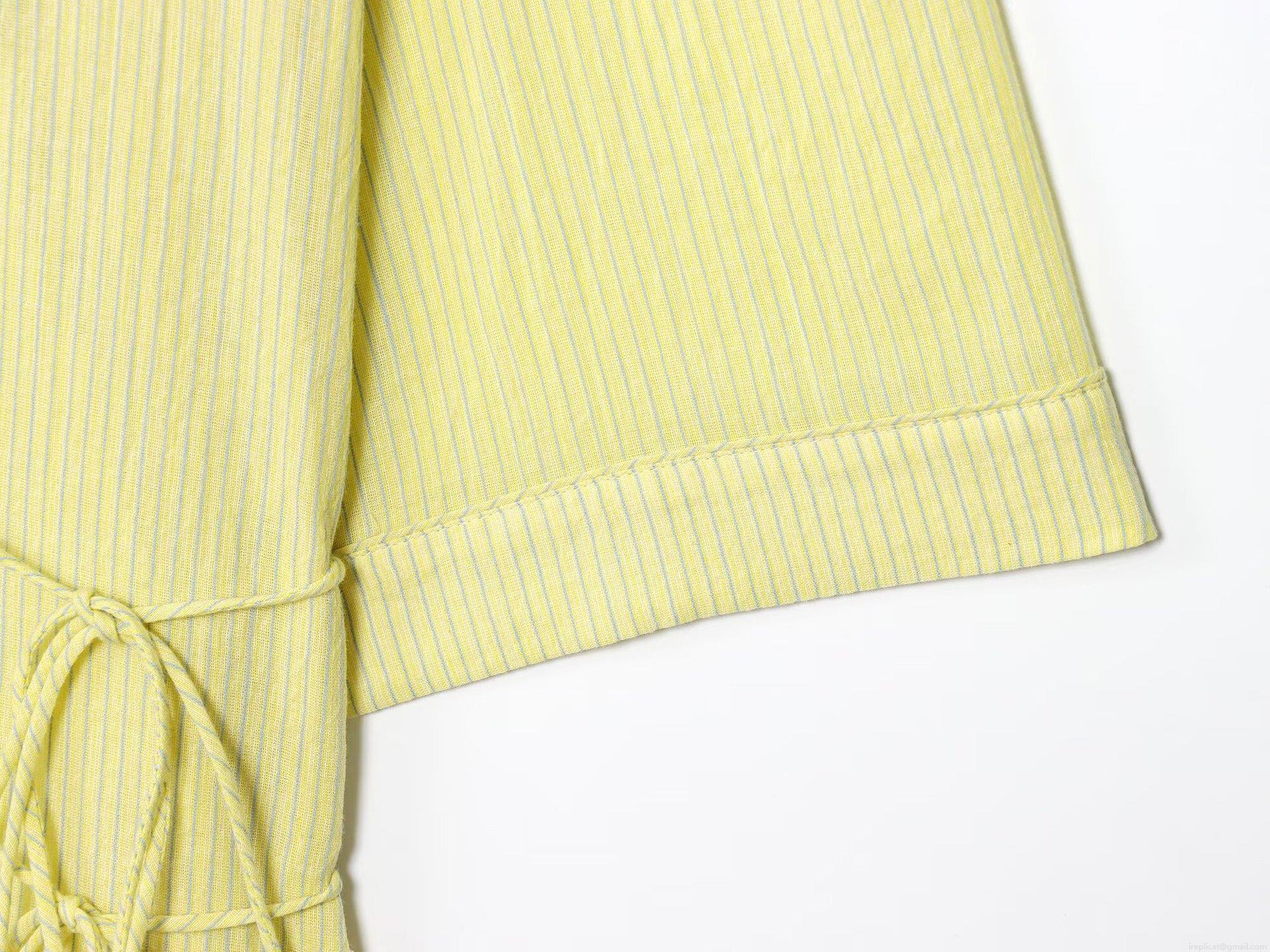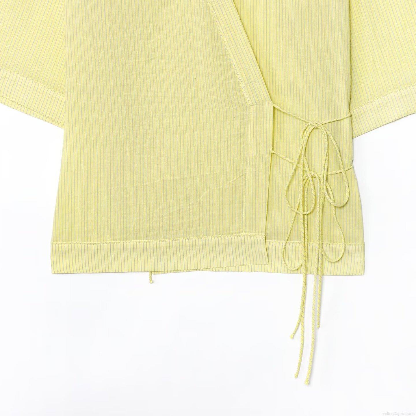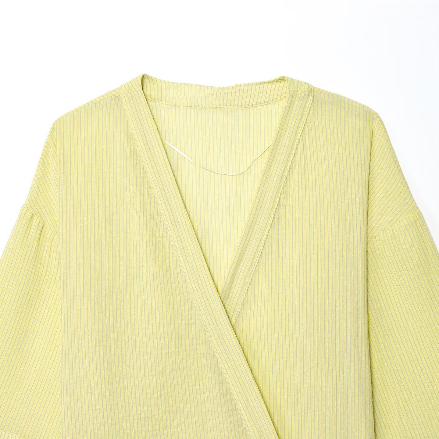 • Women Kimono Style Striped Cardigan Top Slub Cotton Blend Cross V-Neck Tie Side Bow Vertical Stripes Summer Casual Vacation Lightweight Blouse
