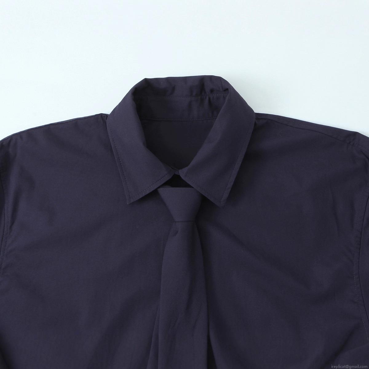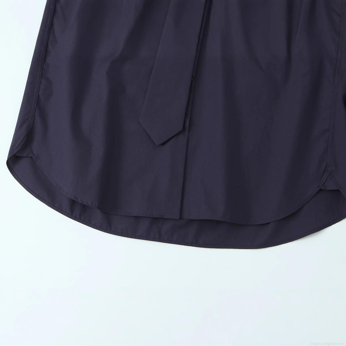 • Women Long Sleeve Blouse With Tie Polyester Solid Color Business Casual Office Work Shirt Elegant Navy Blue Socialite Tops