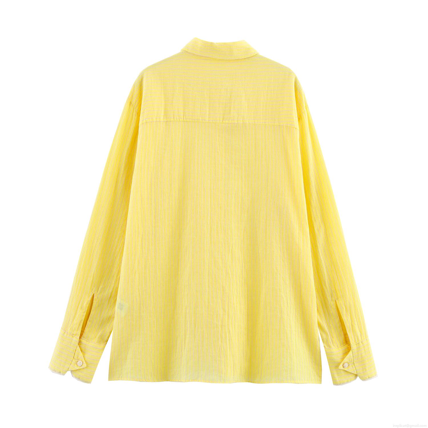• Women Long Sleeve Striped Shirt Blouse Casual Loose Fit Polyester Blend Button Down Top With Chest Pocket Fresh Sweet Style For Ladies Daily Office Wear