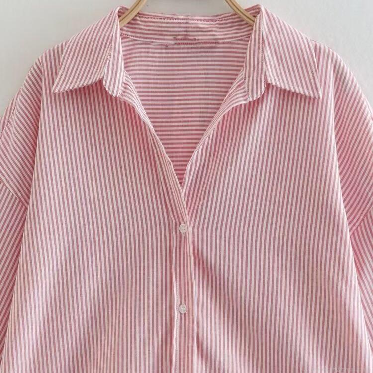 • Women Oversized Poplin Shirt Casual Long Sleeve Polo Neck Blouse Solid Color Stripe Polyester Cotton Blend Top For Women Daily Office Wear Comfort Loose Fit Fashion Shirt
