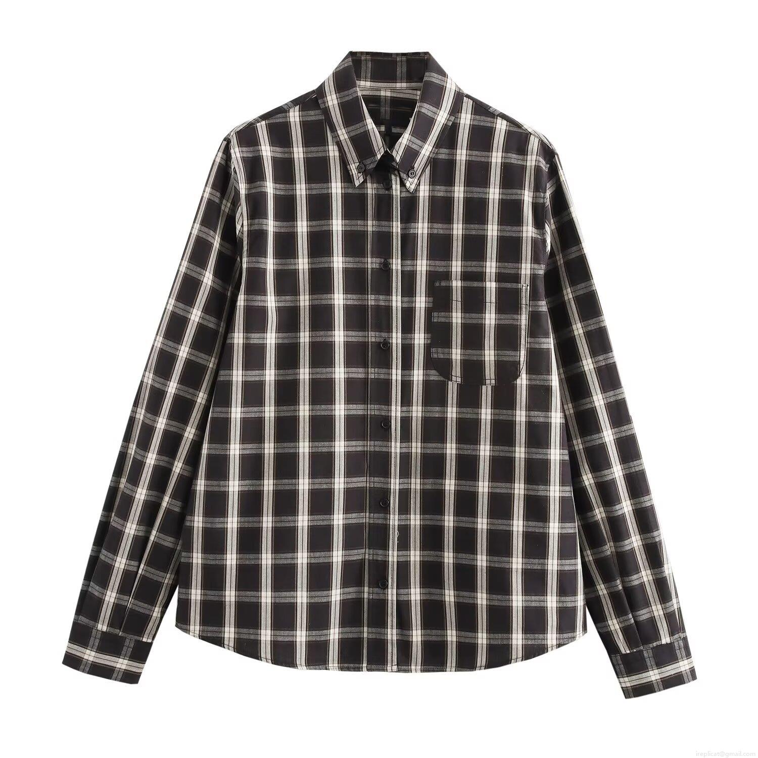 • Women Poplin Polyester Long Sleeve Button Down Shirt Chic Striped Plaid Blouse For Office Casual Streetwear Ladies Work Tops