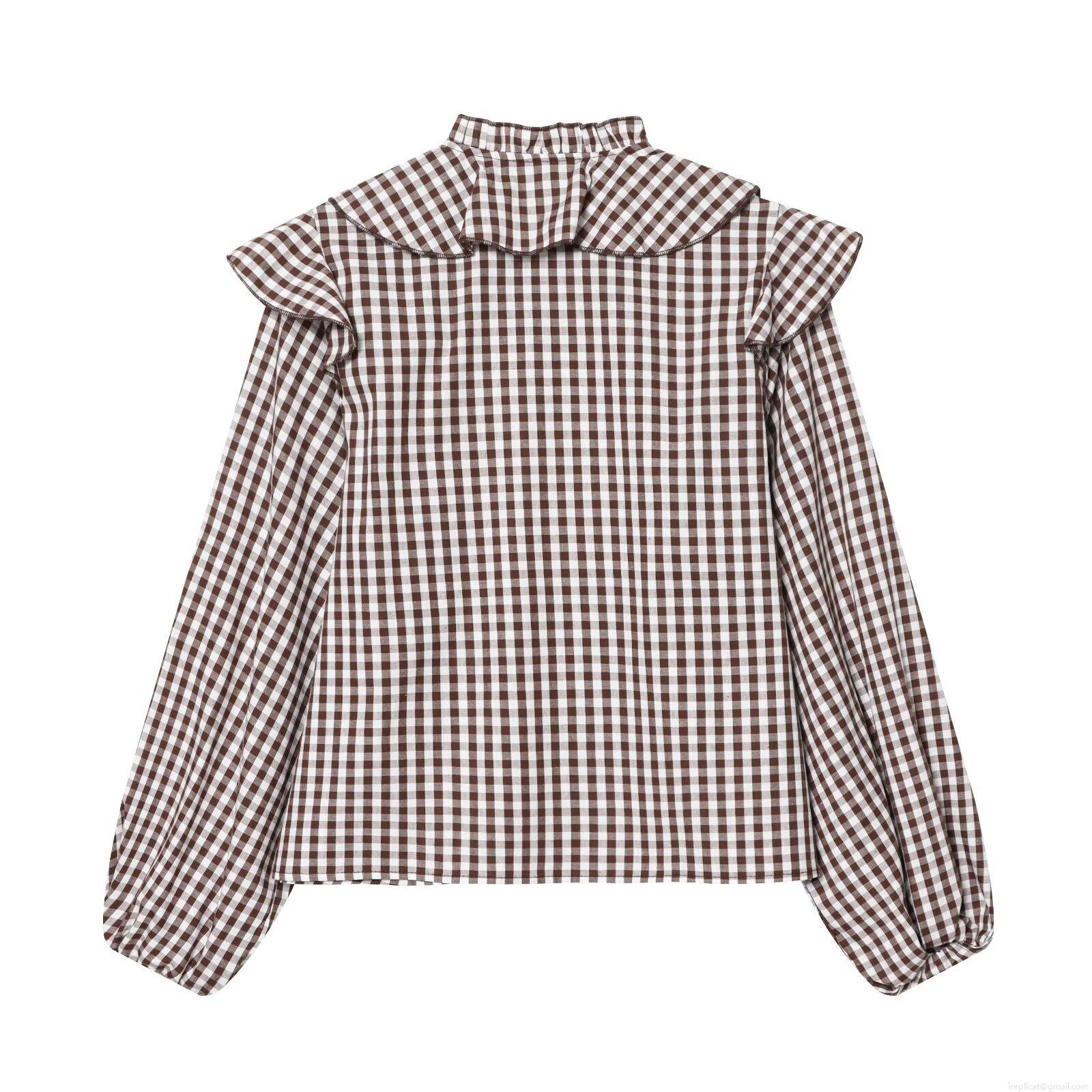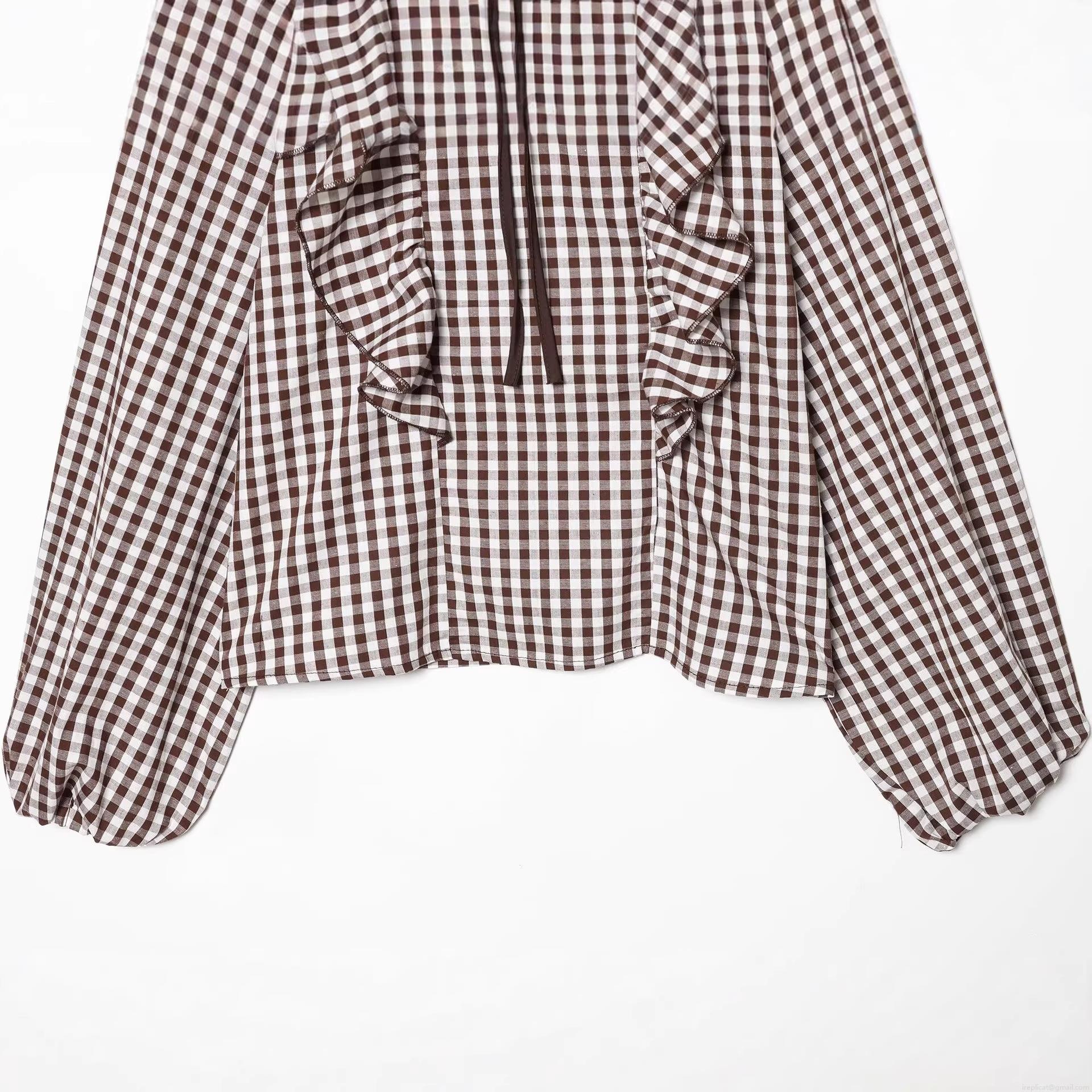 Checkered Pattern, Ruffles, Bow Tie, Lantern Sleeves