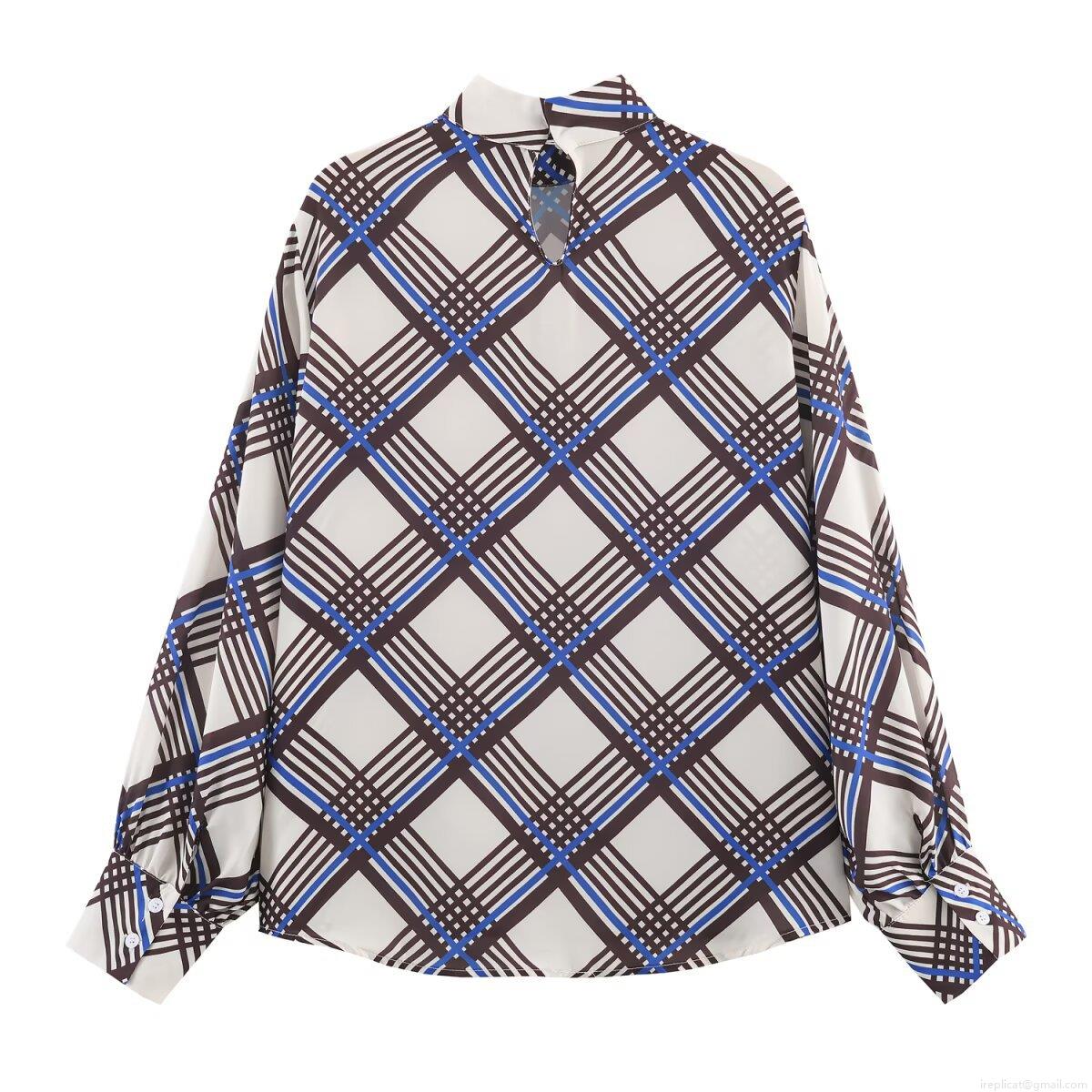• Women Retro Plaid Blouse Polyester Chiffon Mock Neck Long Sleeve Color Block Checkered Shirt Elegant Autumn Streetwear Pullover Top