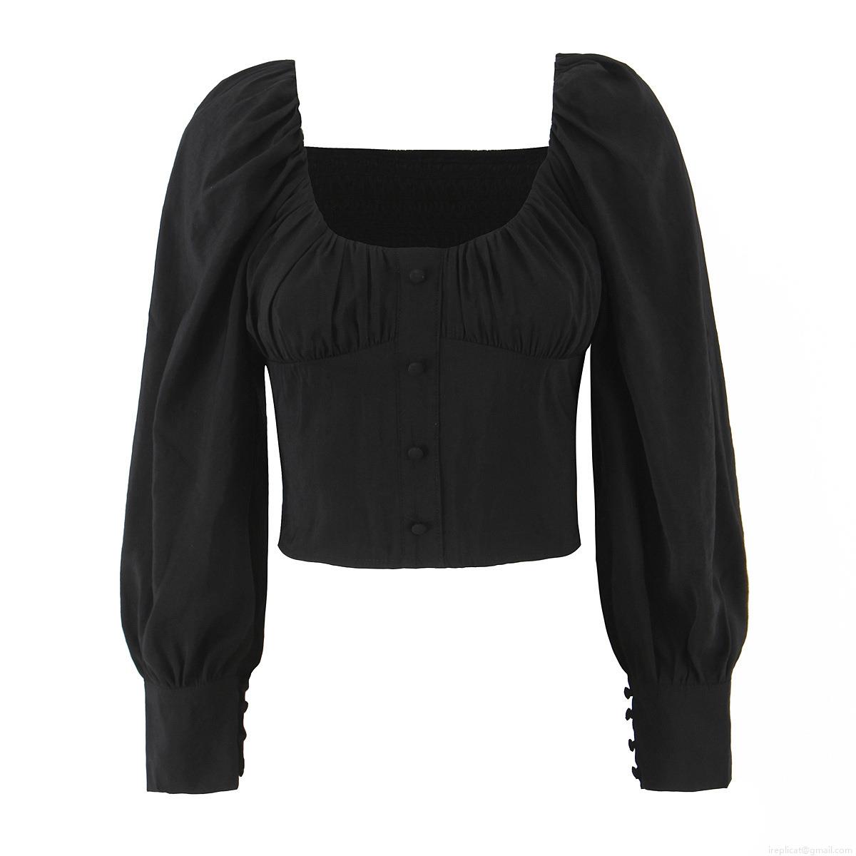 Solid Color, Puff Sleeves, Square Collar, Gathering And Pleating, Fabric-covered Buttons