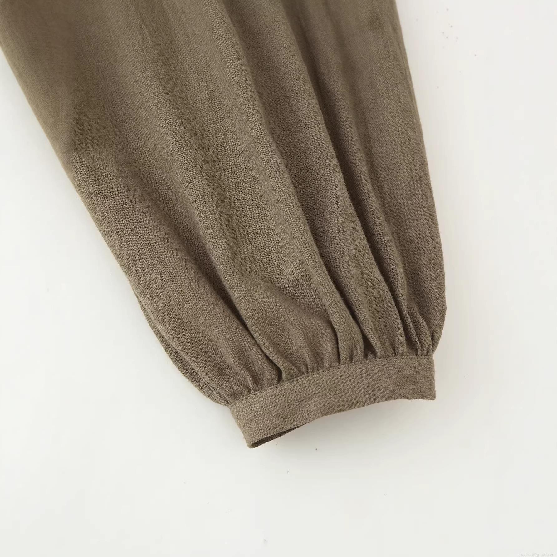 • Women Round Neck Long Lantern Sleeve Floral Embroidery Blouse Casual Button Down Polyester Shirt Bohemian Spring Streetwear Top