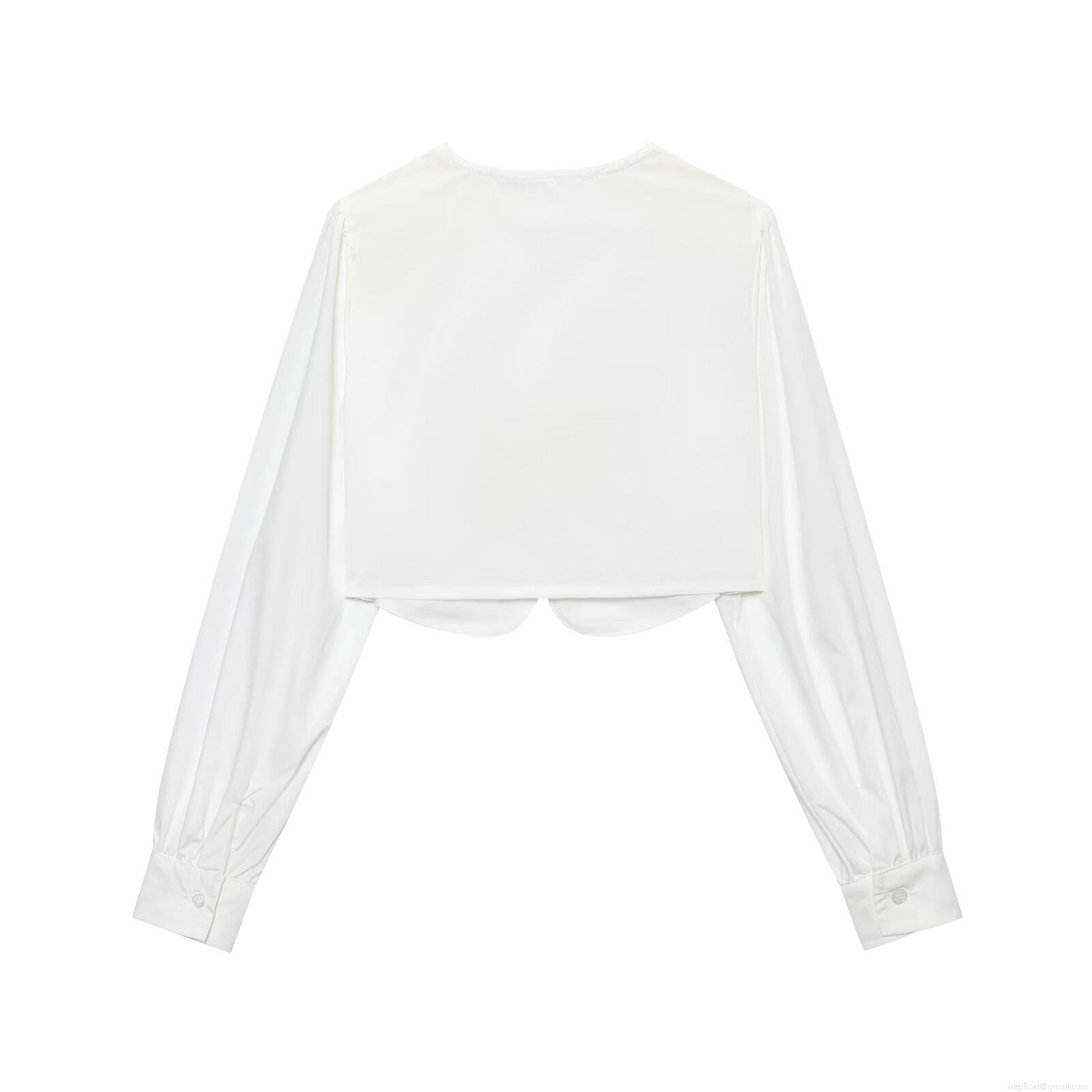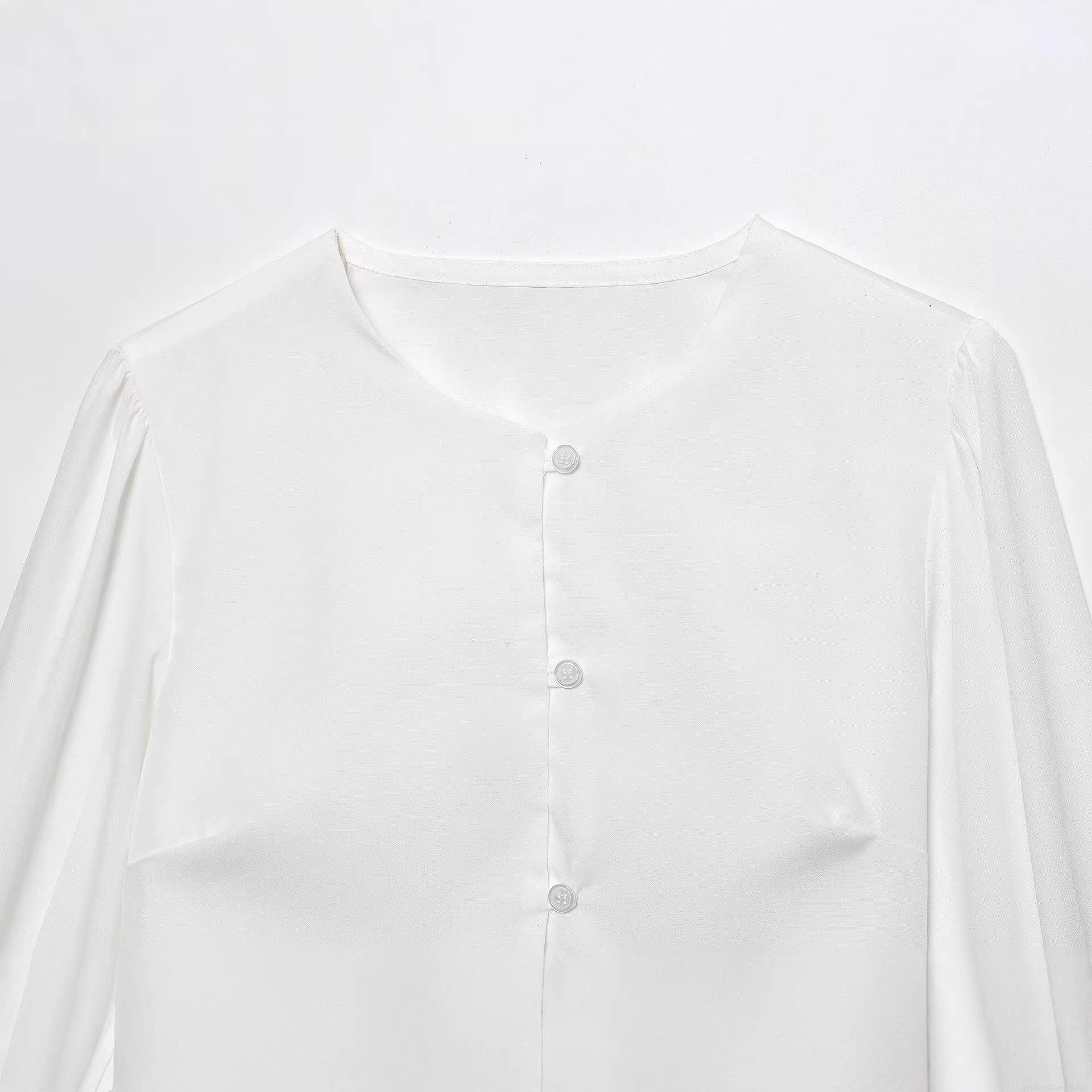 • Women Round Neck Long Sleeve Cropped Shirt Elegant Curved Hem Button Up Top Solid Color Polyester Blouse For Spring Autumn Daily Dating Party Outfits