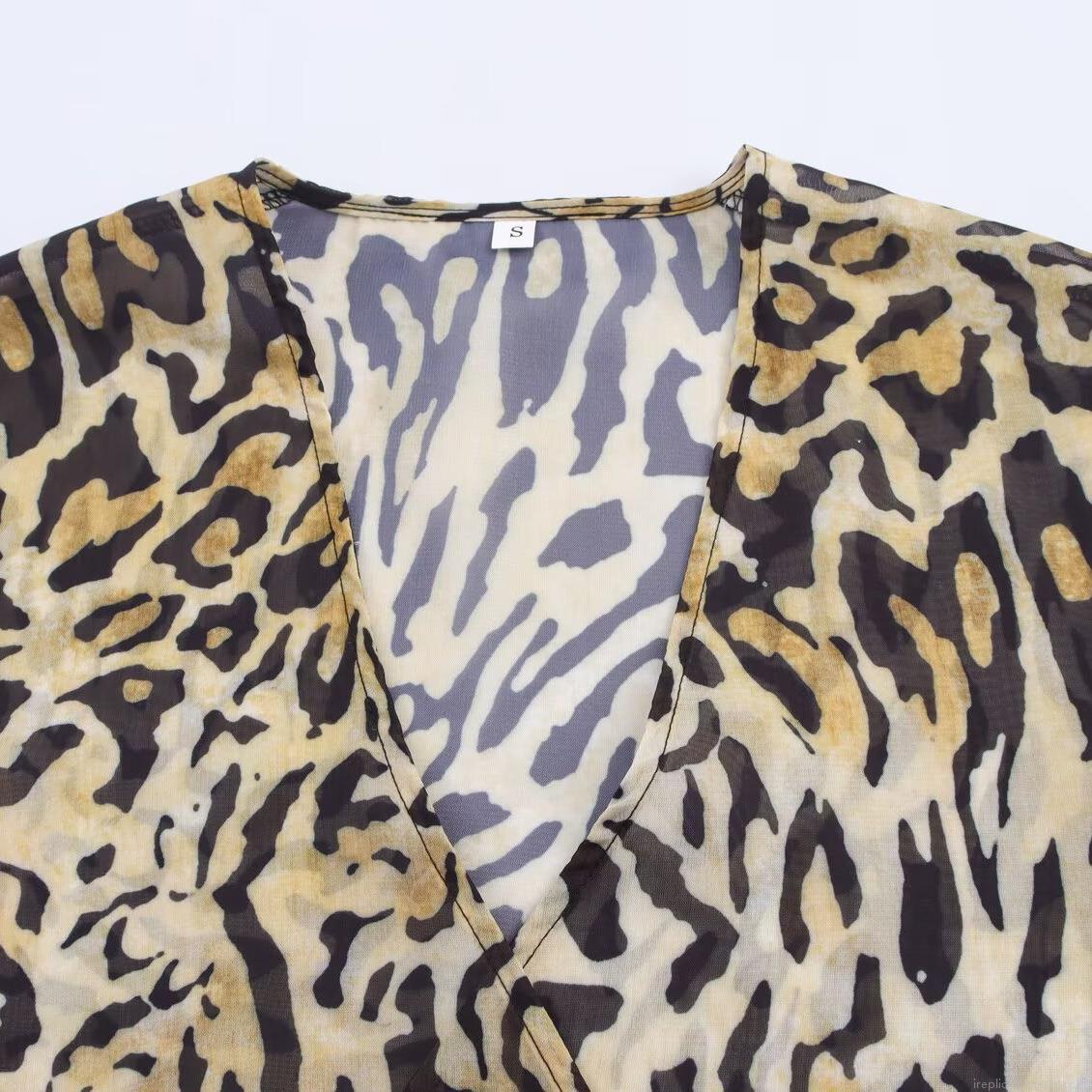 • Women Sexy Deep V-Neck Leopard Print Chiffon Blouse Long Sleeve Wrap Shirt With Belt Casual Fashion Tops For Ladies Party Dating