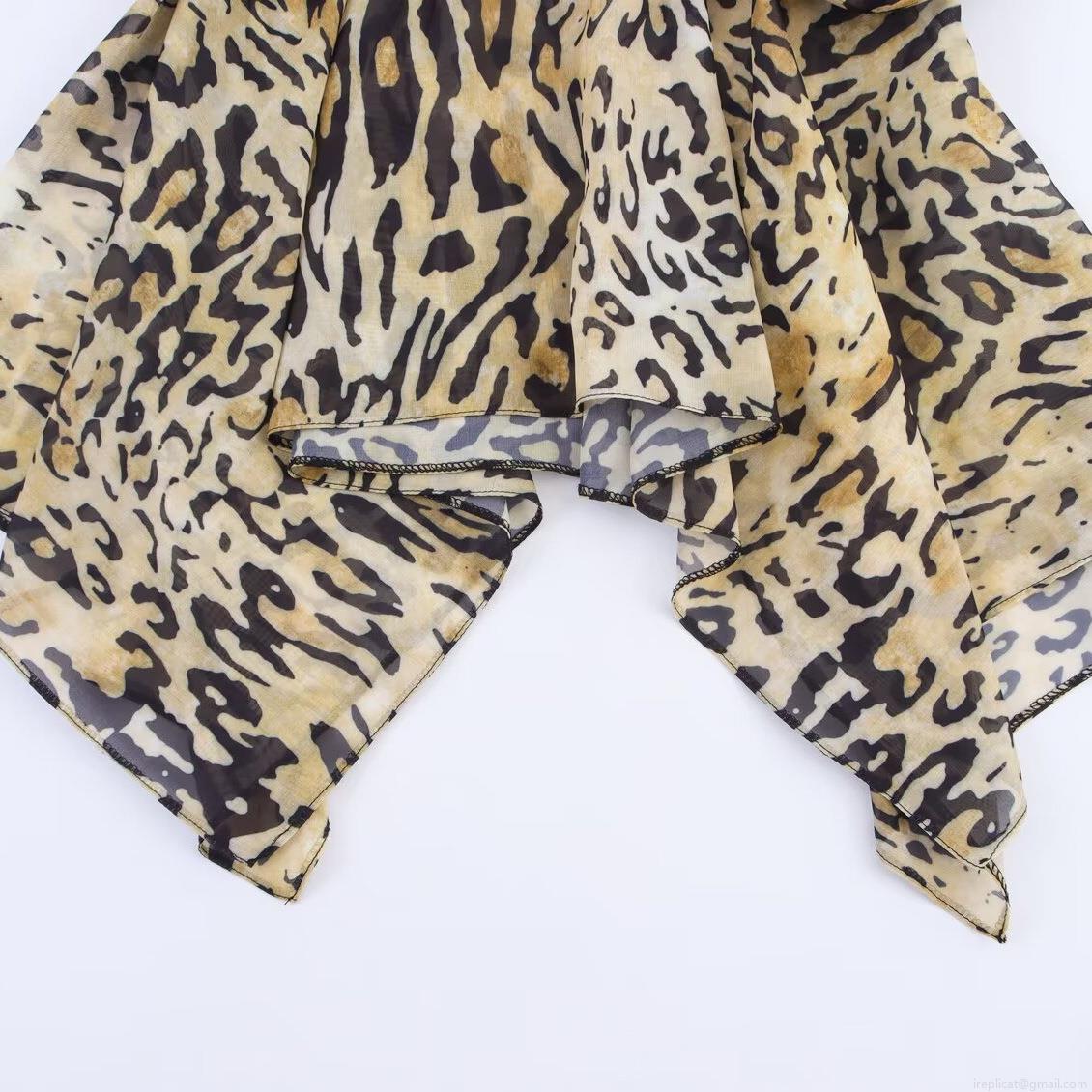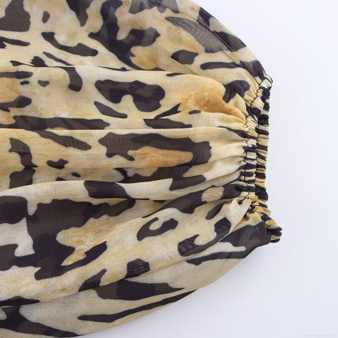 Leopard Print, Puff Sleeves, Deep V-neck, Belt, Asymmetrical Hem