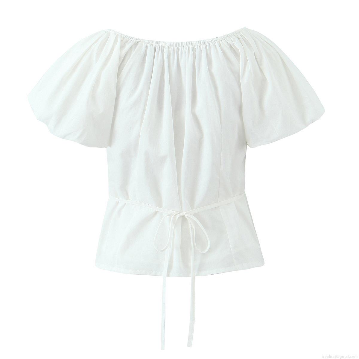 • Women Sexy White Puff Sleeve Blouse Top With Lace Trim And Drawstring Tie Back Summer Off Shoulder Slim Cotton Short Sleeve Shirt For Women