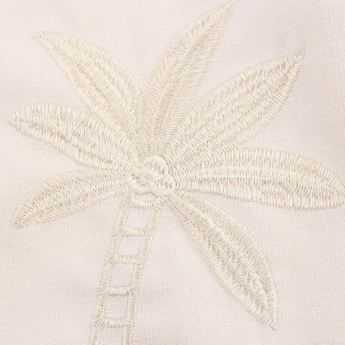 Women Short Sleeve Embroidered Blouse Coconut Tree Pattern Lapel V-Neck Vacation Style Cotton Linen Texture Summer Cropped Top For Beach Resort