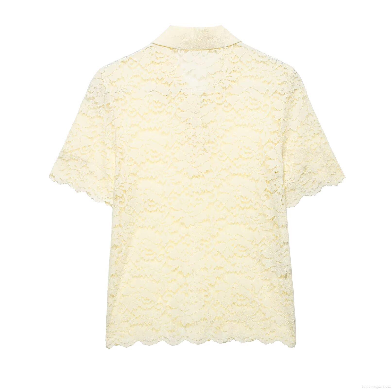 • Women Short Sleeve Lace Polo Shirt Elegant Hollow Out Floral Embroidery Polyester Blouse Summer Streetwear Casual Tops For Lady