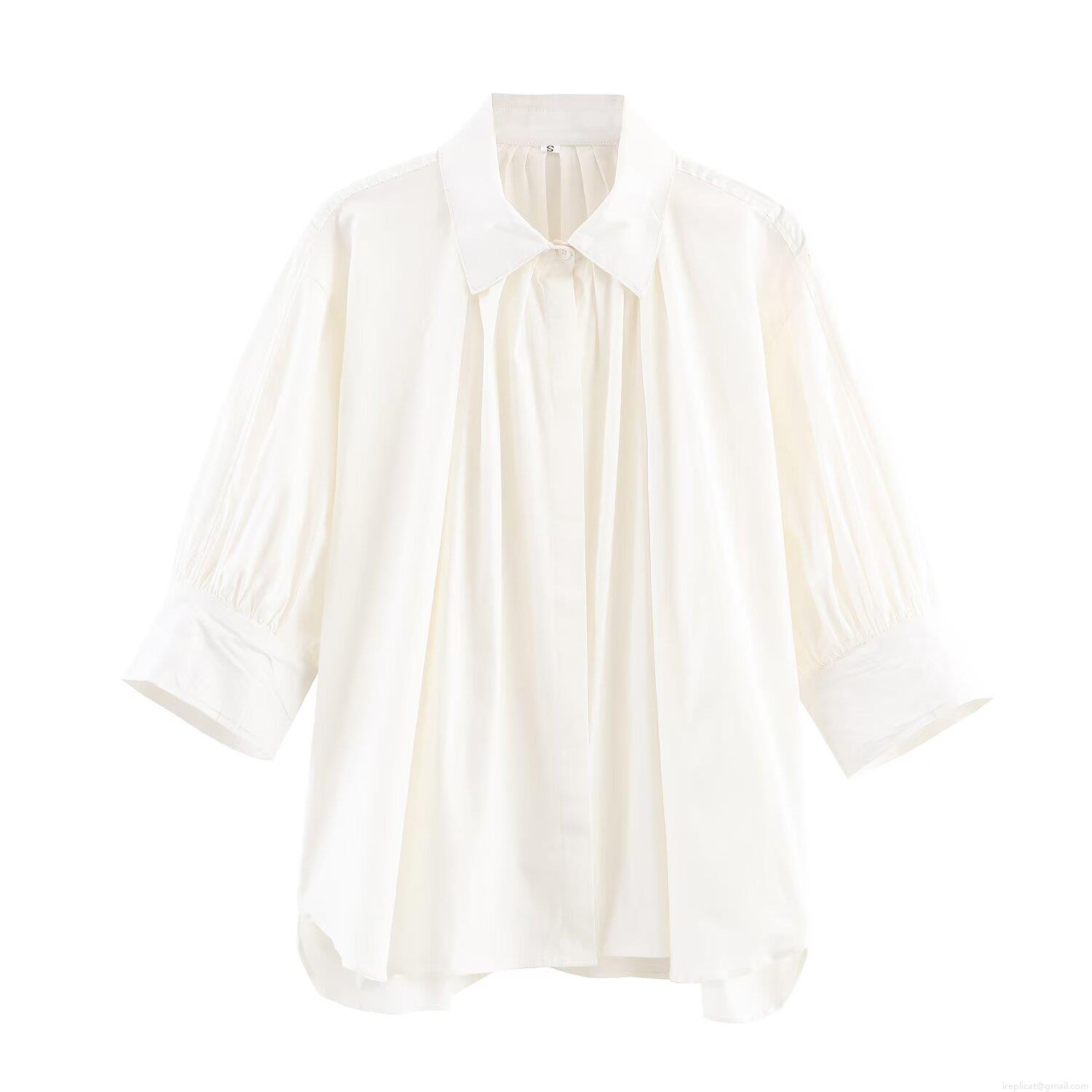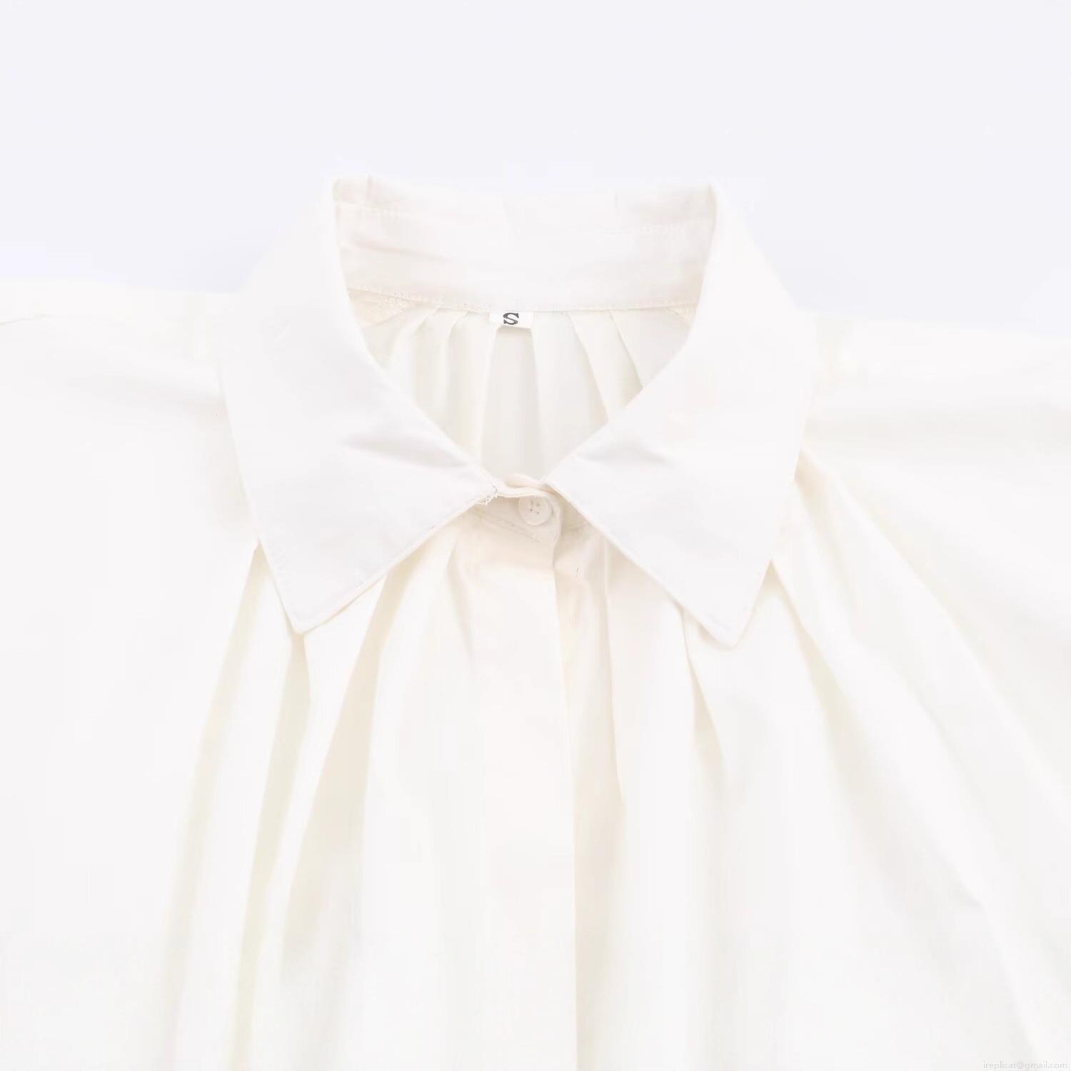 • Women Solid White Pleated Lapel Shirt Casual Loose Long Sleeve Button Down Blouse Autumn Streetwear Fashion Top