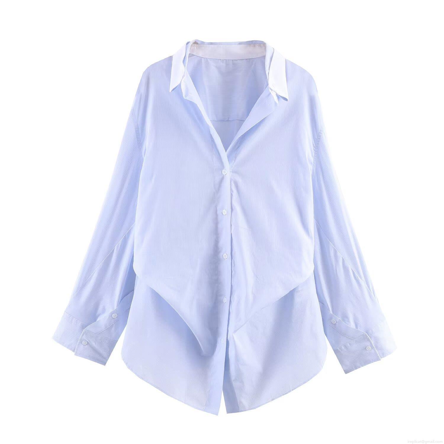 • Women Striped Batwing Sleeve Shirt Polyester Cotton Contrast Lapel Collar Button Down Loose Fit Long Sleeve Casual Daily Office Fashion Blouse