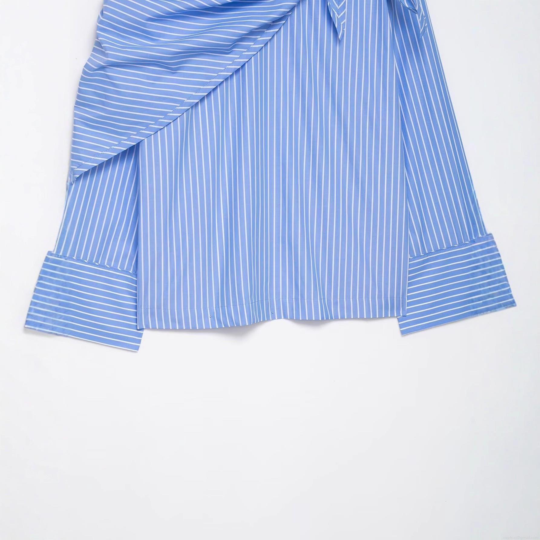 Women Striped Long Sleeve Blouse 100% Polyester Asymmetric Round Neck Scarf Knot Design Loose Casual Shirt Top For Daily Autumn Fashion