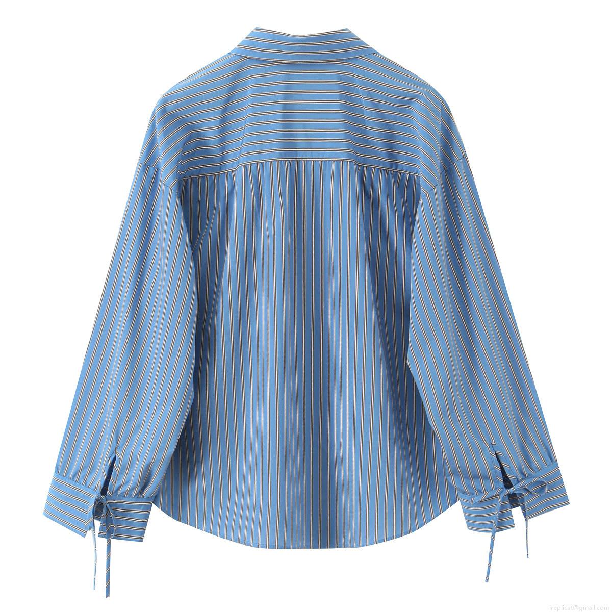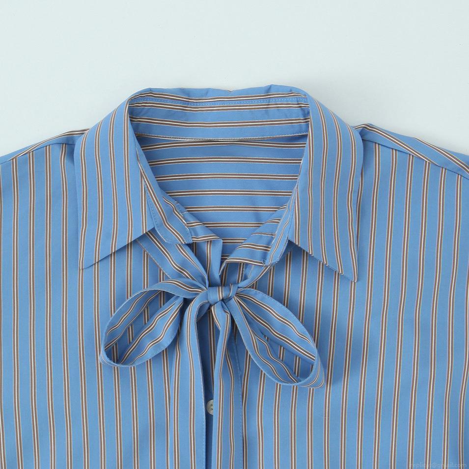• Women Striped Long Sleeve Blouse Bow Tie Neck Casual Loose Shirt For Daily Office Fashion Polyester Spandex Blend Striped Top