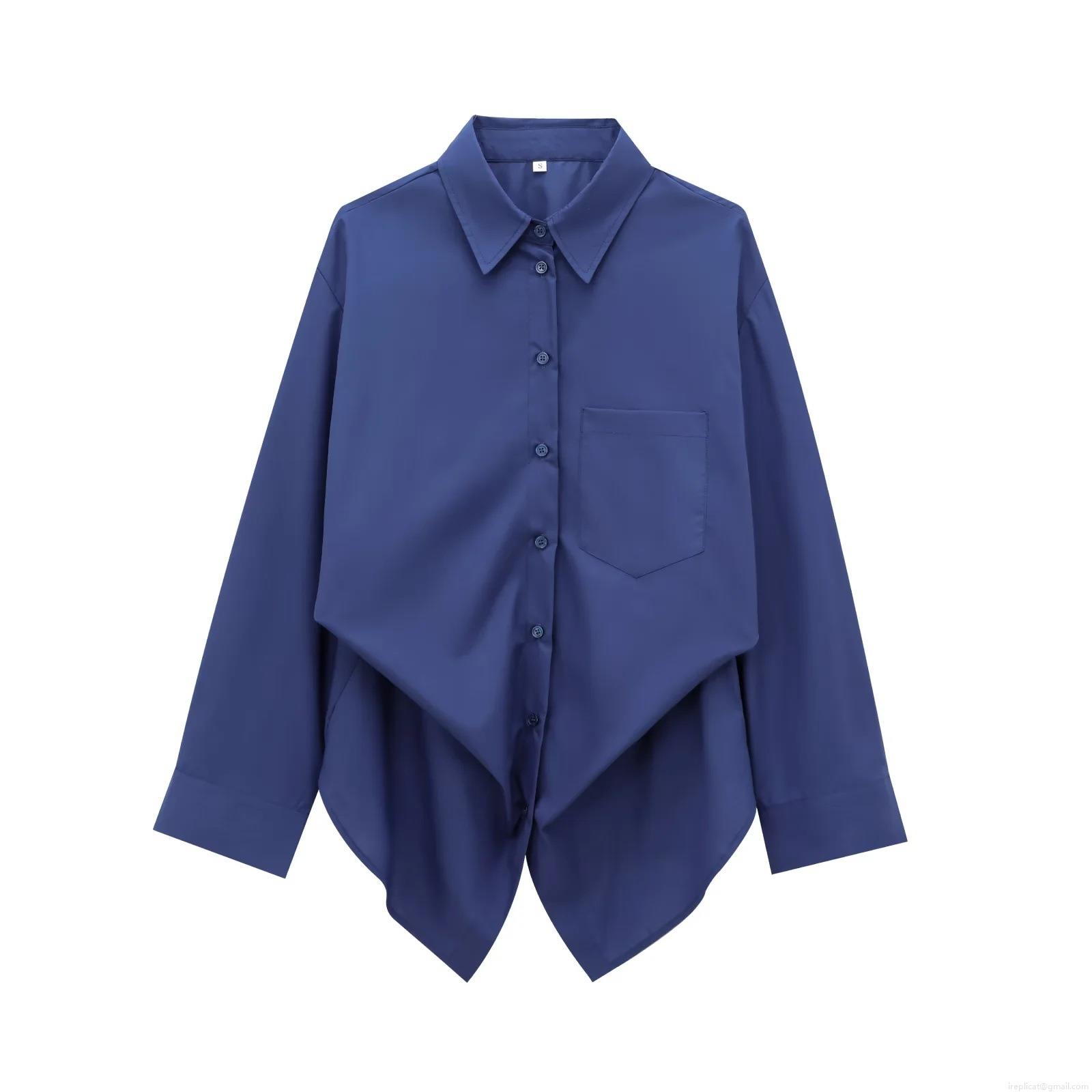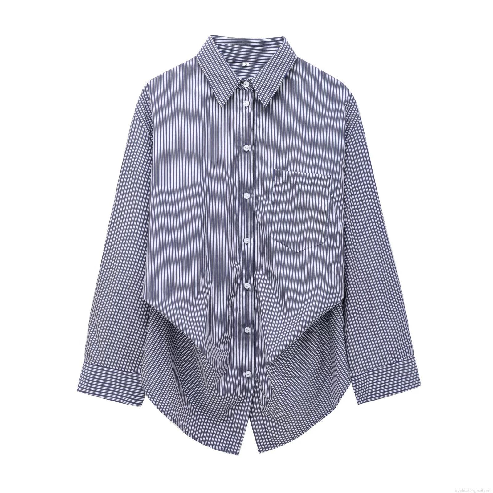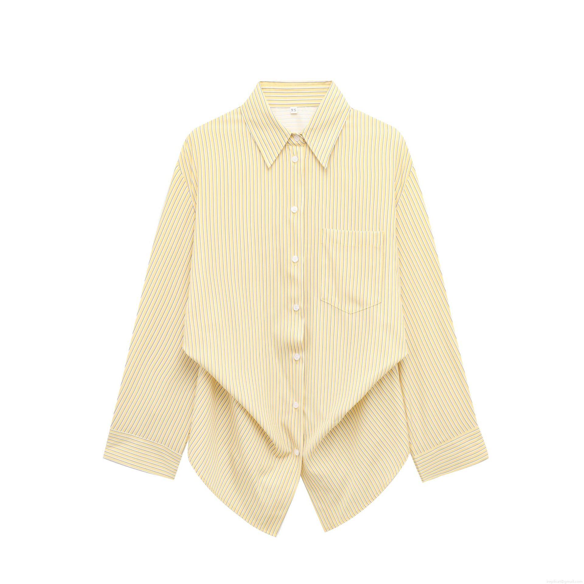 Solid Color, Vertical Stripes, Single-breasted, Irregular Hem, Chest Pocket, Knotted Hem