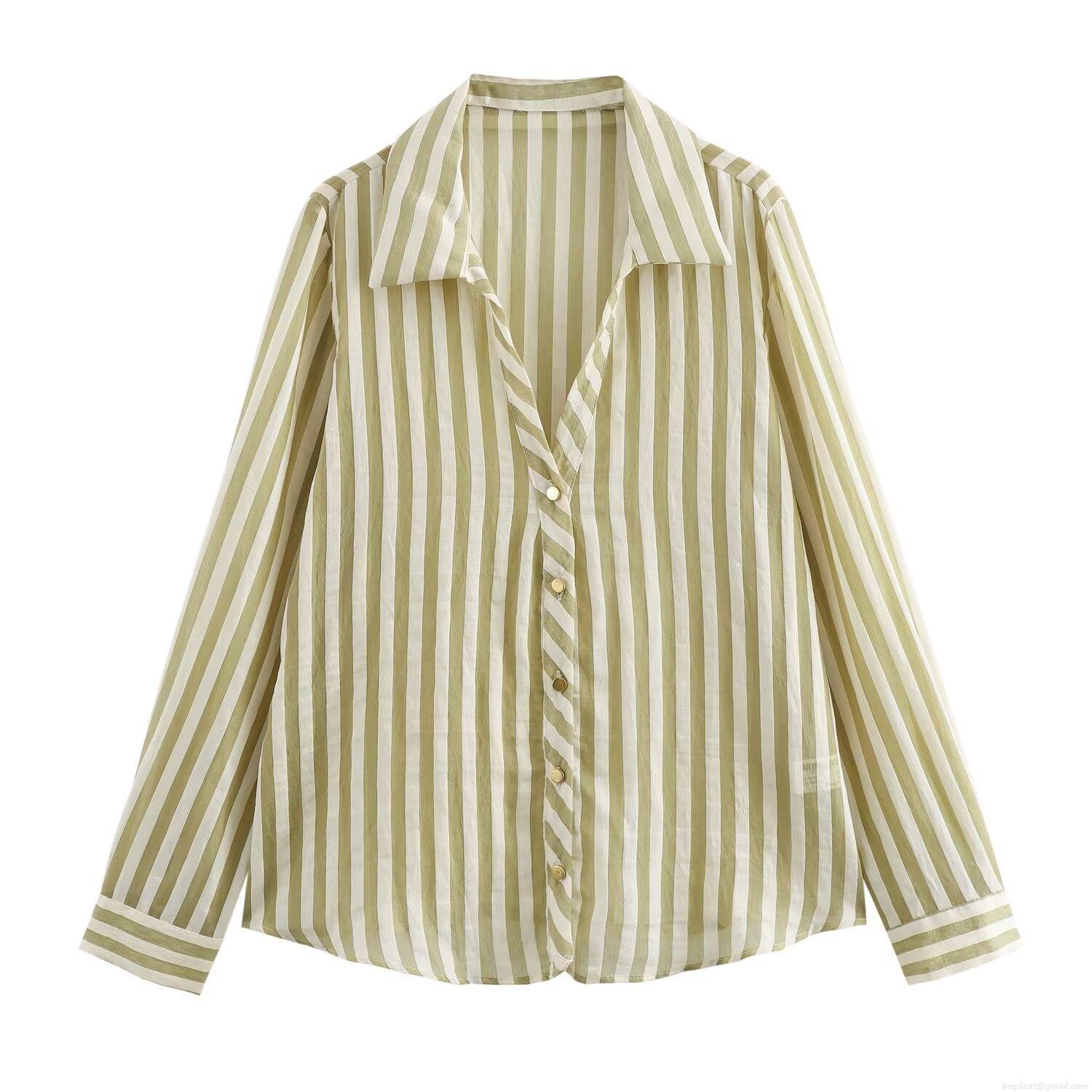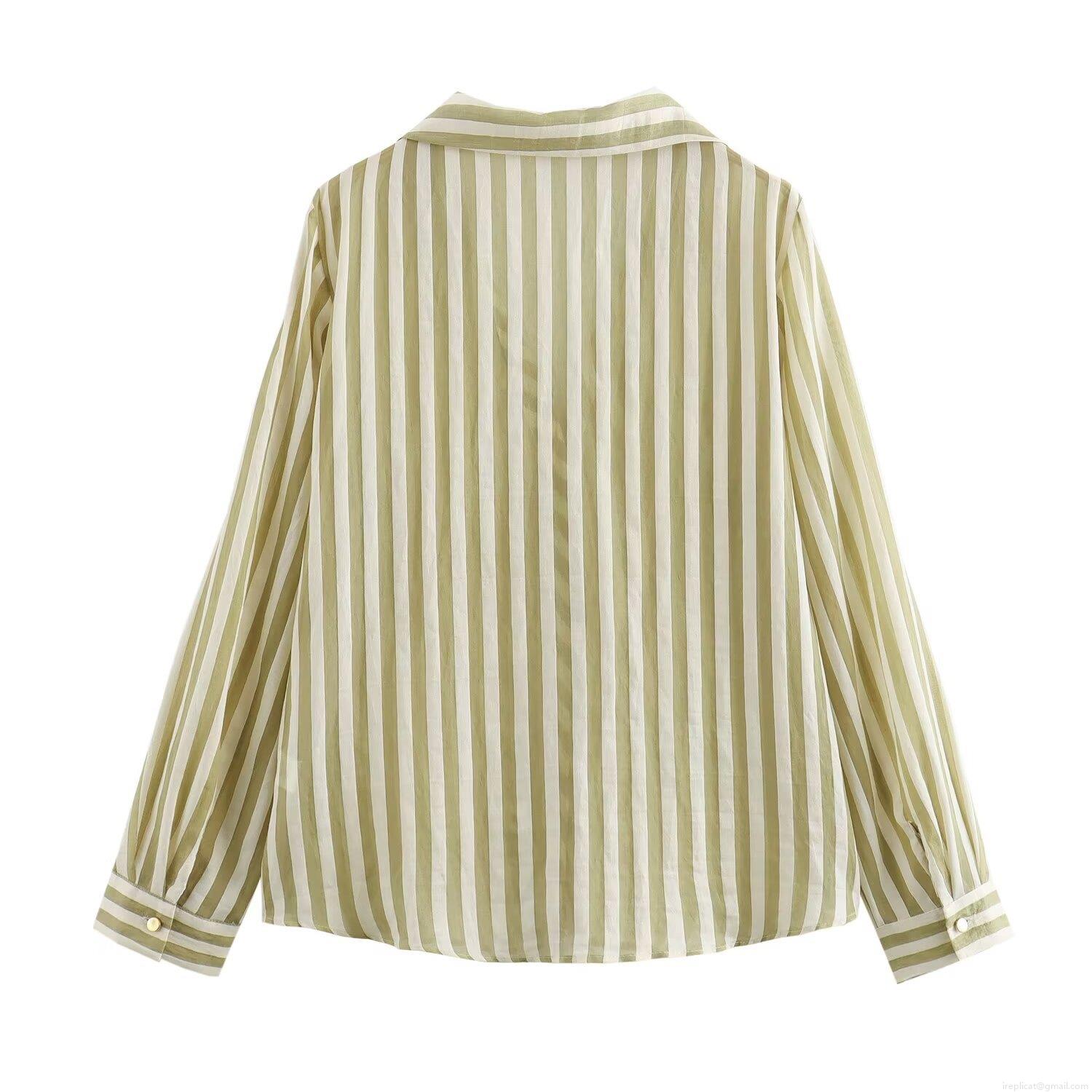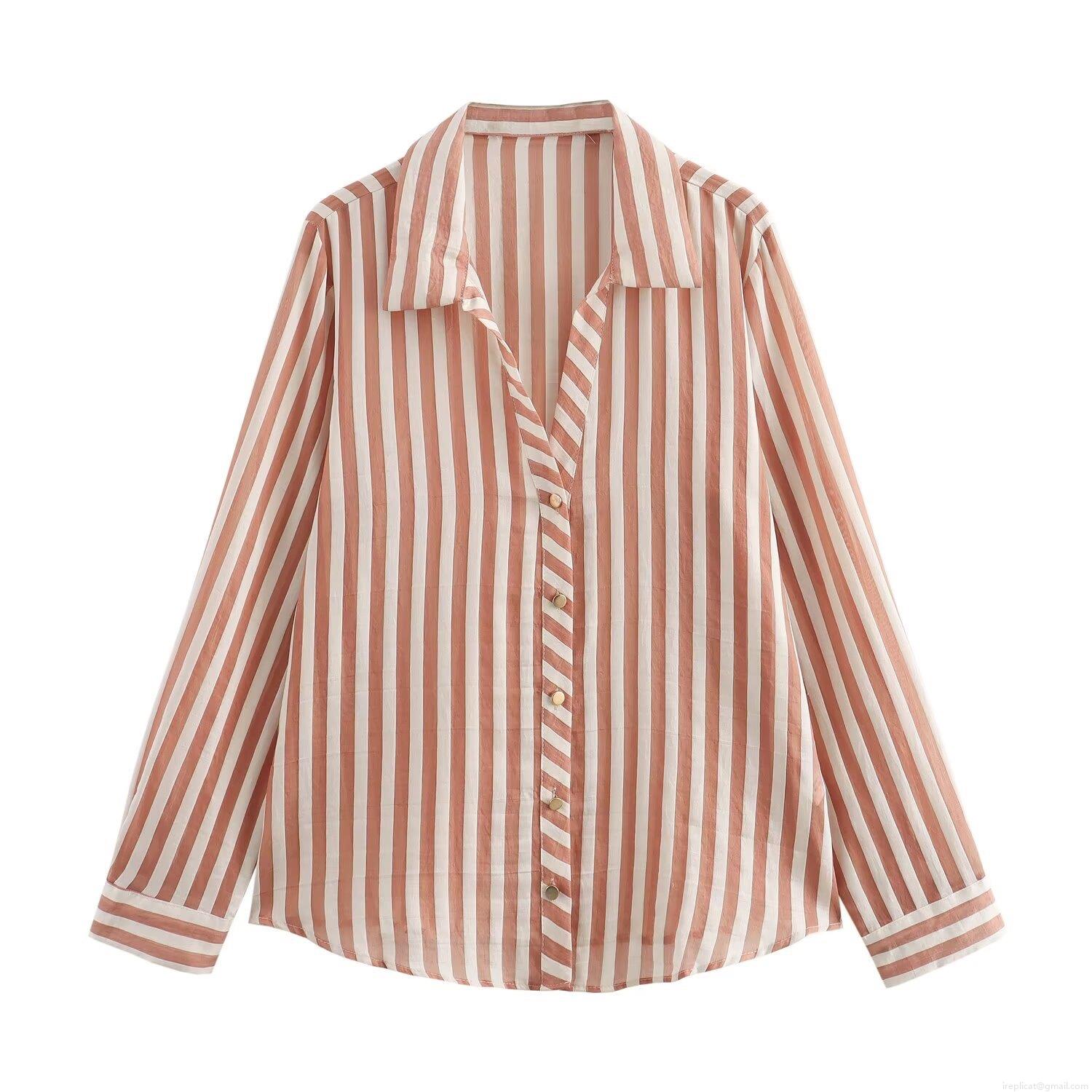 • Women Striped Long Sleeve Shirt Blouse Casual Loose Fit Lapel Button Down Top For Streetwear Daily Women Clothing